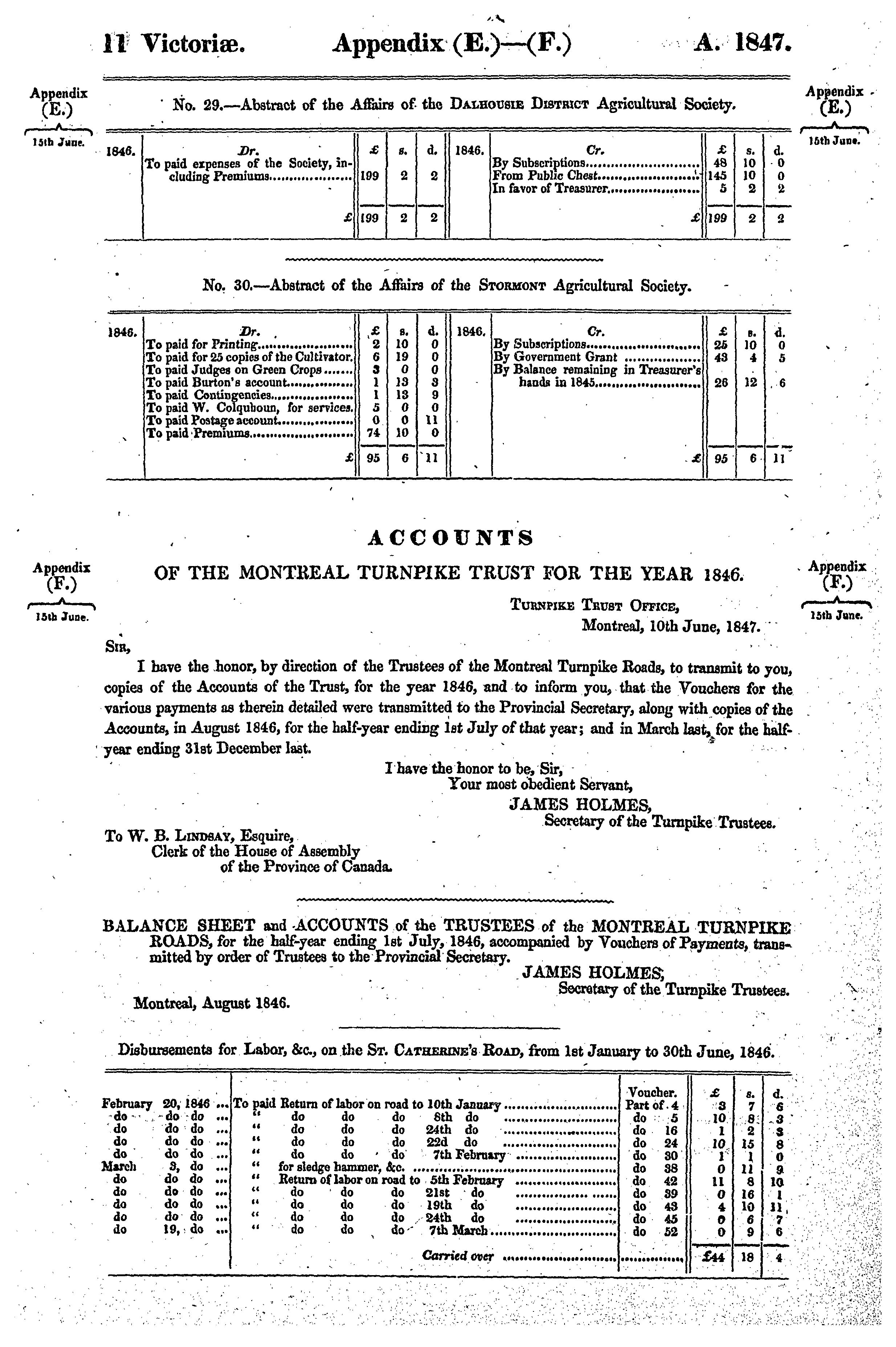 Appendix to the sixth volume of the journals of the Legislative Assembly of the Province of Canada, from the 2nd day of June to the 28th day of July, 1847, both days inclusive, and in the tenth and eleventh years of the reign of Our Sovereign Lady Queen Victoria, being the third session of the second provincial Parliament of Canada, session 1847 : 1847 (no. 1)