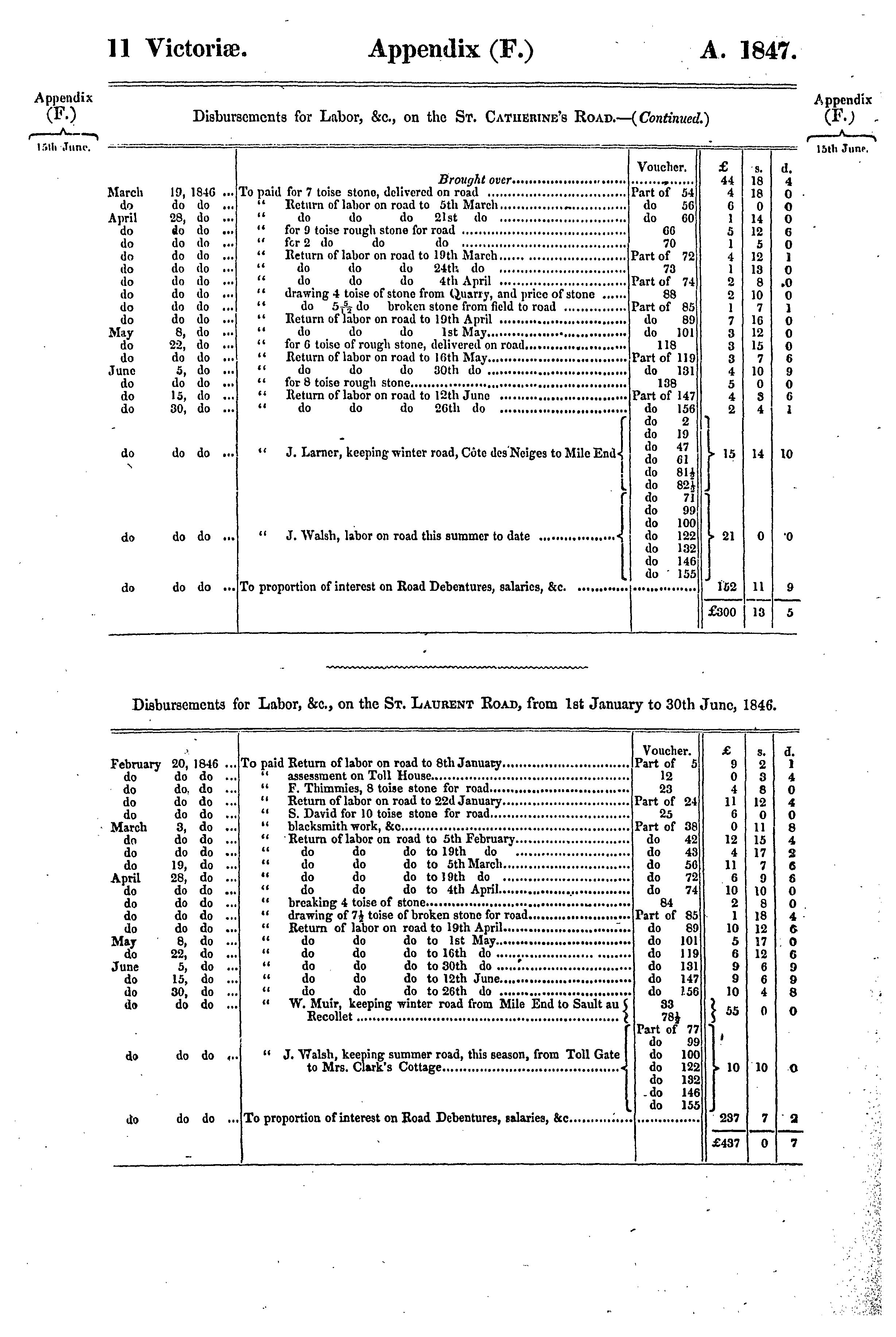 Appendix to the sixth volume of the journals of the Legislative Assembly of the Province of Canada, from the 2nd day of June to the 28th day of July, 1847, both days inclusive, and in the tenth and eleventh years of the reign of Our Sovereign Lady Queen Victoria, being the third session of the second provincial Parliament of Canada, session 1847 : 1847 (no. 1)