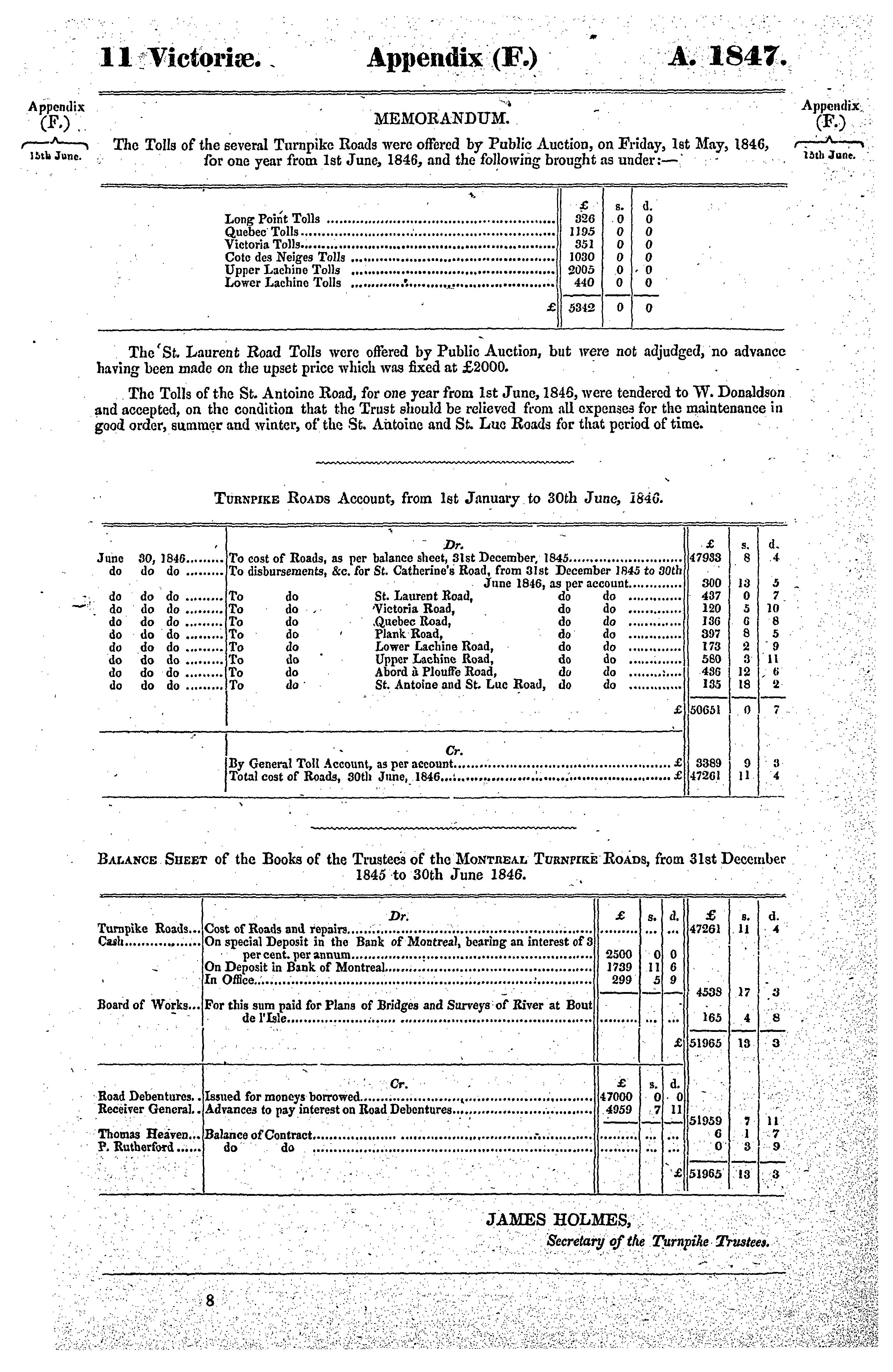 Appendix to the sixth volume of the journals of the Legislative Assembly of the Province of Canada, from the 2nd day of June to the 28th day of July, 1847, both days inclusive, and in the tenth and eleventh years of the reign of Our Sovereign Lady Queen Victoria, being the third session of the second provincial Parliament of Canada, session 1847 : 1847 (no. 1)