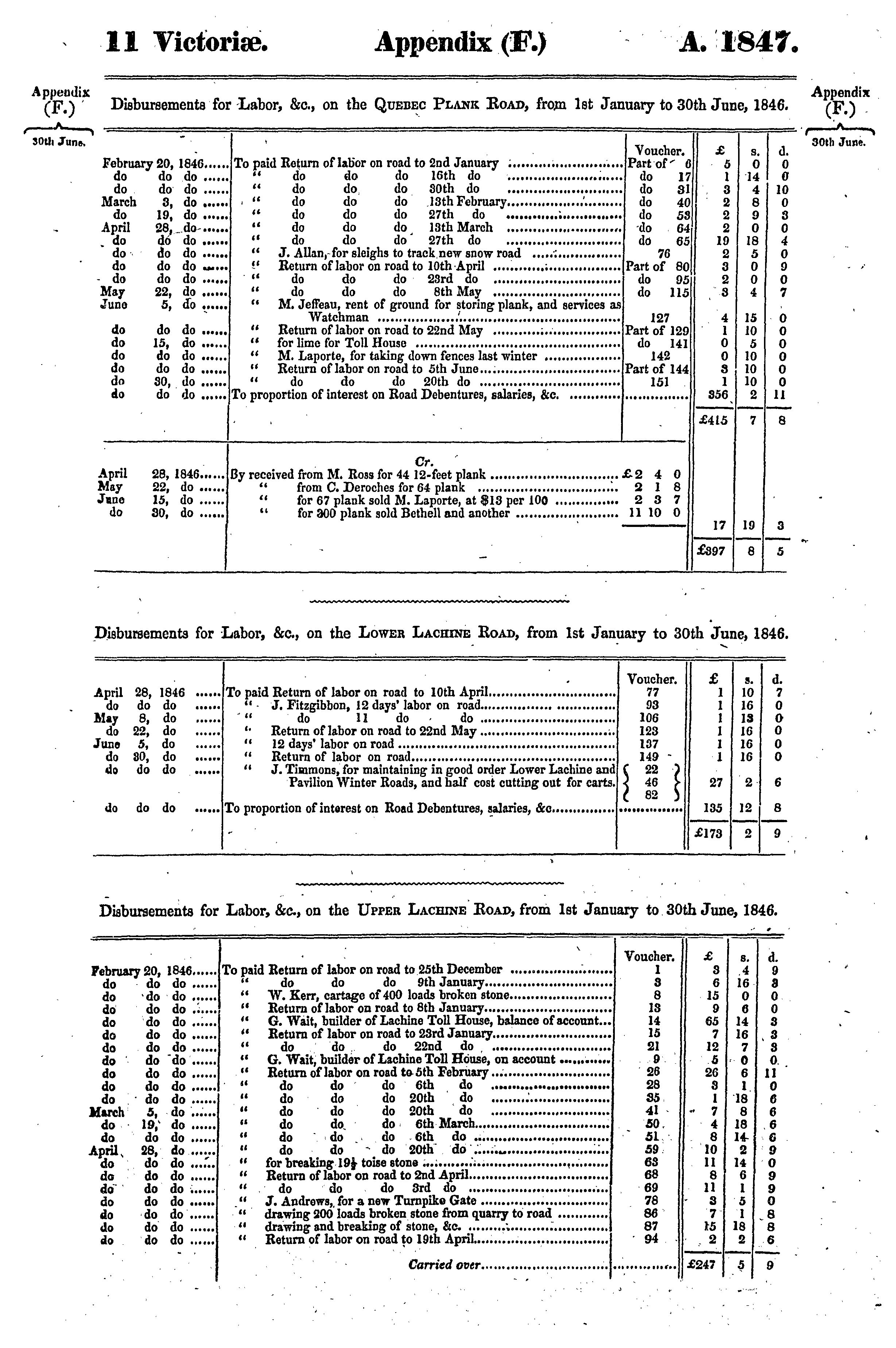 Appendix to the sixth volume of the journals of the Legislative Assembly of the Province of Canada, from the 2nd day of June to the 28th day of July, 1847, both days inclusive, and in the tenth and eleventh years of the reign of Our Sovereign Lady Queen Victoria, being the third session of the second provincial Parliament of Canada, session 1847 : 1847 (no. 1)