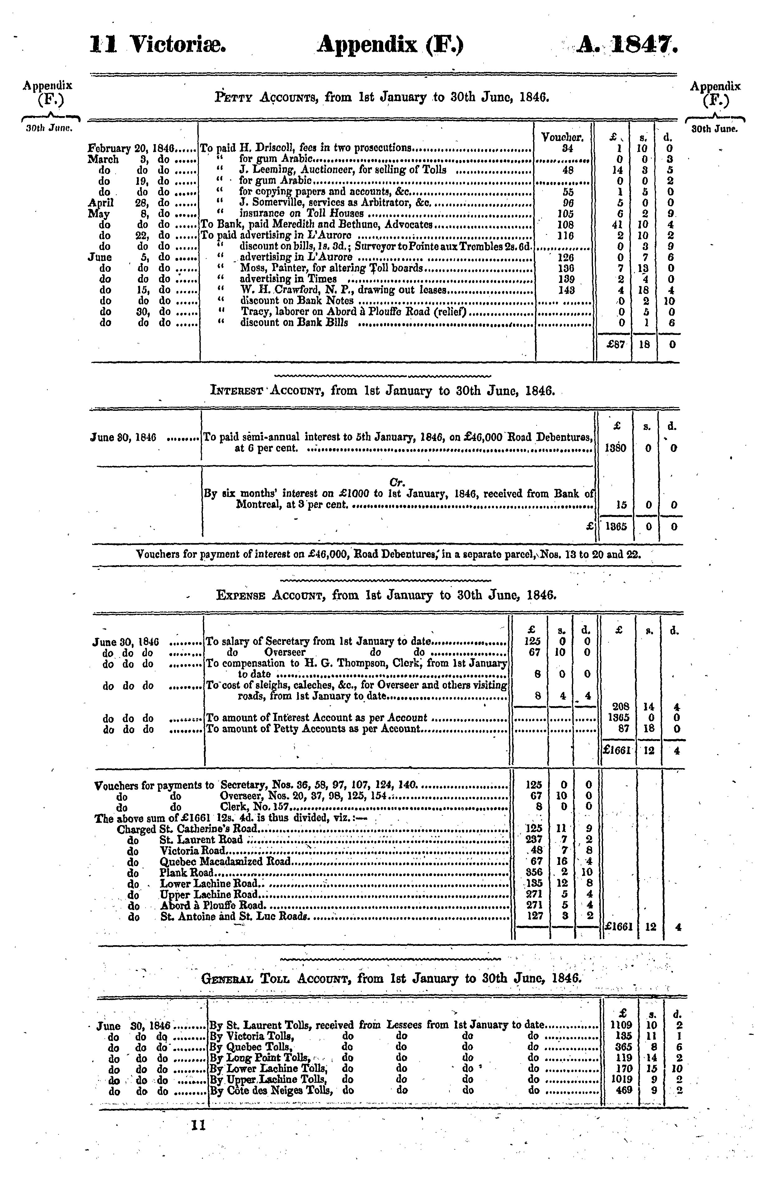 Appendix to the sixth volume of the journals of the Legislative Assembly of the Province of Canada, from the 2nd day of June to the 28th day of July, 1847, both days inclusive, and in the tenth and eleventh years of the reign of Our Sovereign Lady Queen Victoria, being the third session of the second provincial Parliament of Canada, session 1847 : 1847 (no. 1)
