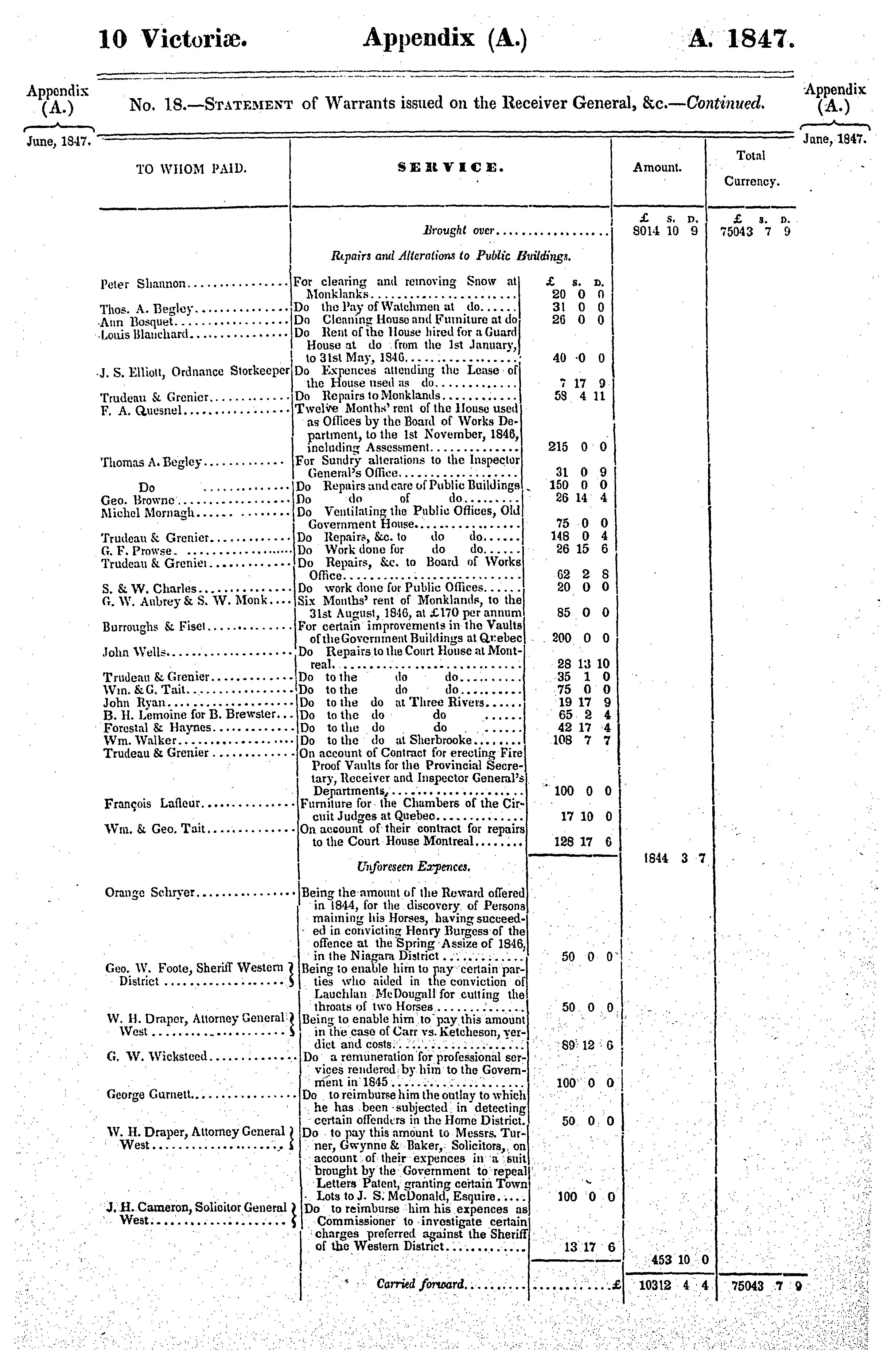 Appendix to the sixth volume of the journals of the Legislative Assembly of the Province of Canada, from the 2nd day of June to the 28th day of July, 1847, both days inclusive, and in the tenth and eleventh years of the reign of Our Sovereign Lady Queen Victoria, being the third session of the second provincial Parliament of Canada, session 1847 : 1847 (no. 1)