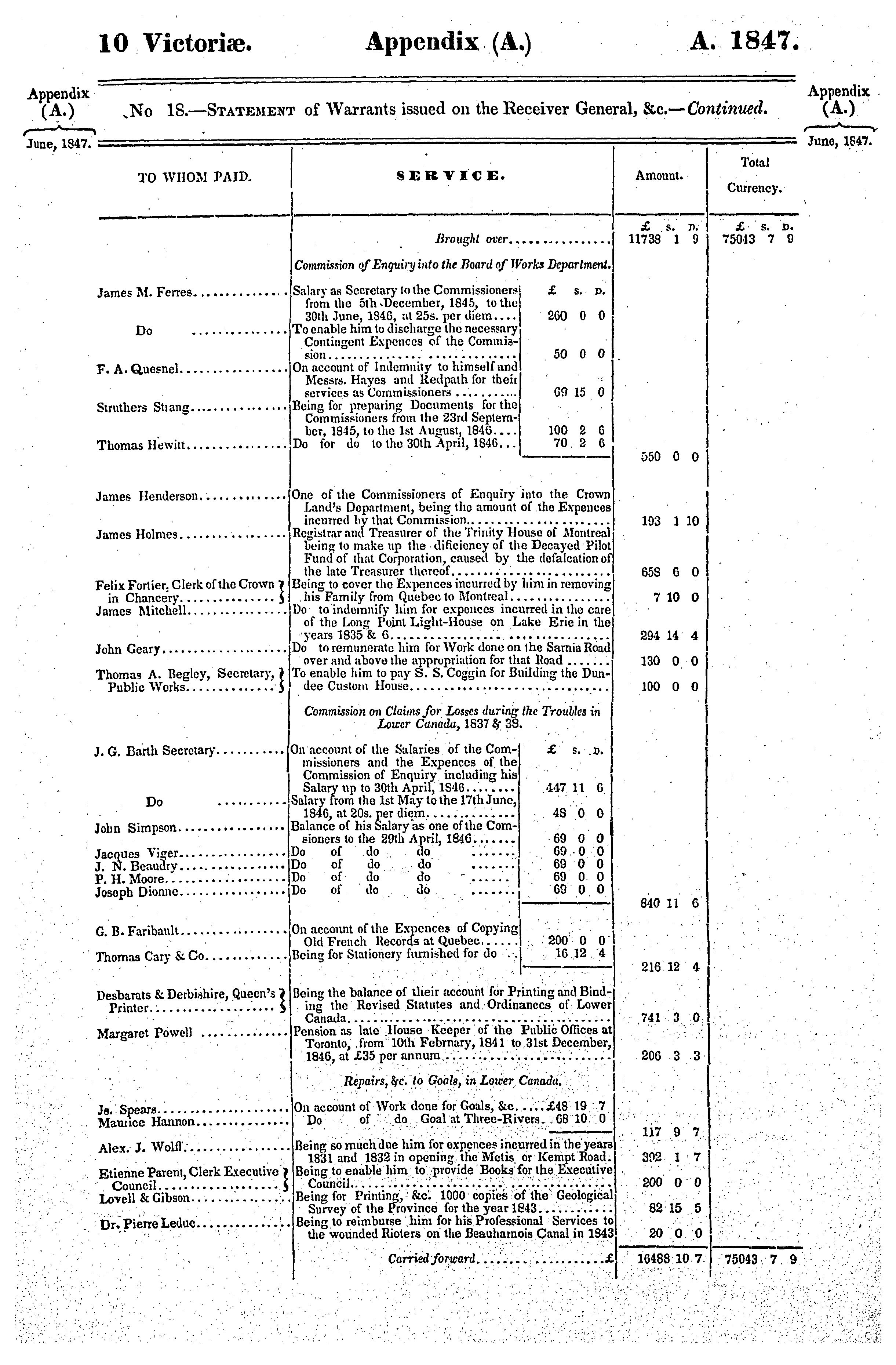 Appendix to the sixth volume of the journals of the Legislative Assembly of the Province of Canada, from the 2nd day of June to the 28th day of July, 1847, both days inclusive, and in the tenth and eleventh years of the reign of Our Sovereign Lady Queen Victoria, being the third session of the second provincial Parliament of Canada, session 1847 : 1847 (no. 1)