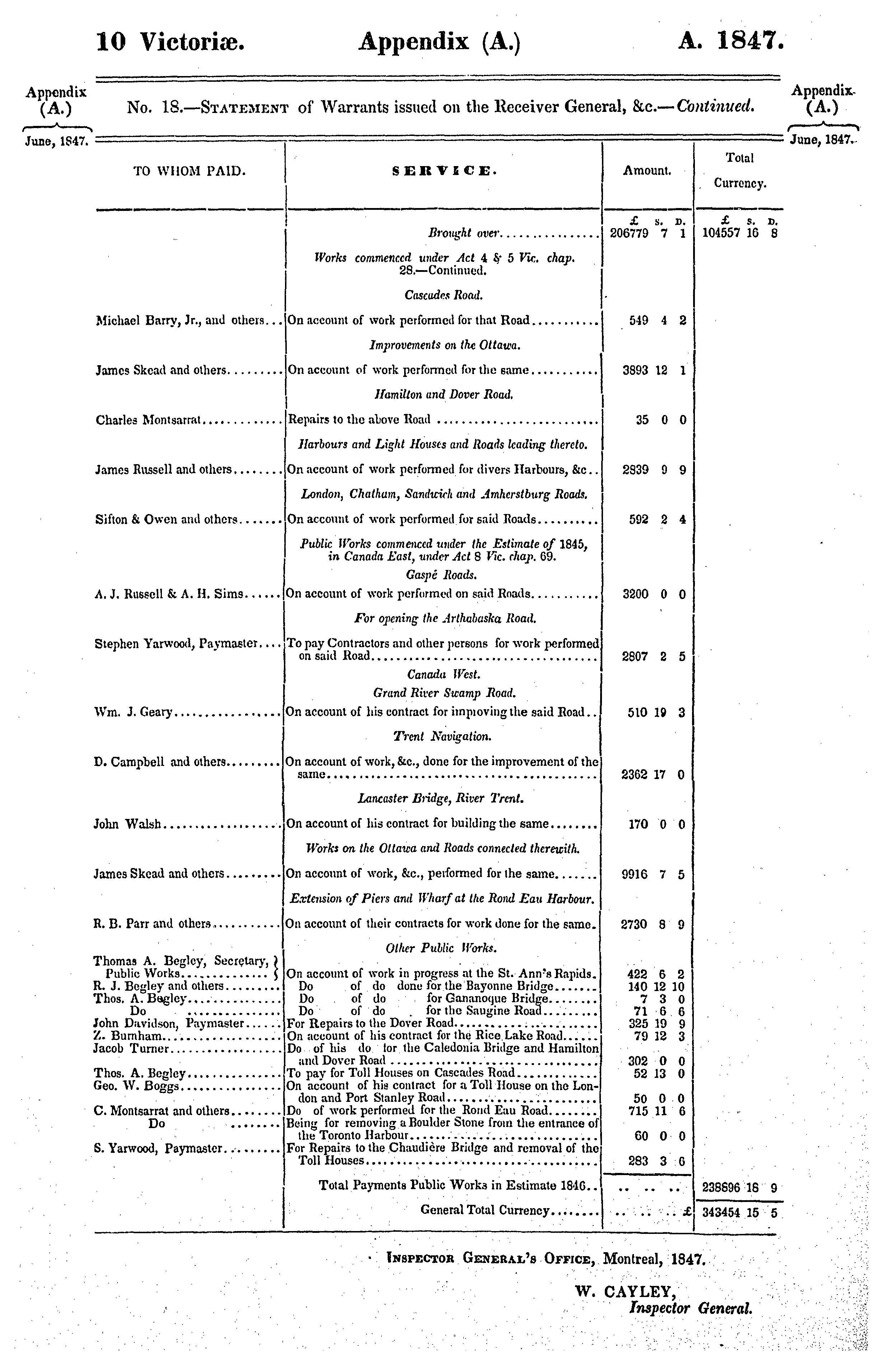 Appendix to the sixth volume of the journals of the Legislative Assembly of the Province of Canada, from the 2nd day of June to the 28th day of July, 1847, both days inclusive, and in the tenth and eleventh years of the reign of Our Sovereign Lady Queen Victoria, being the third session of the second provincial Parliament of Canada, session 1847 : 1847 (no. 1)
