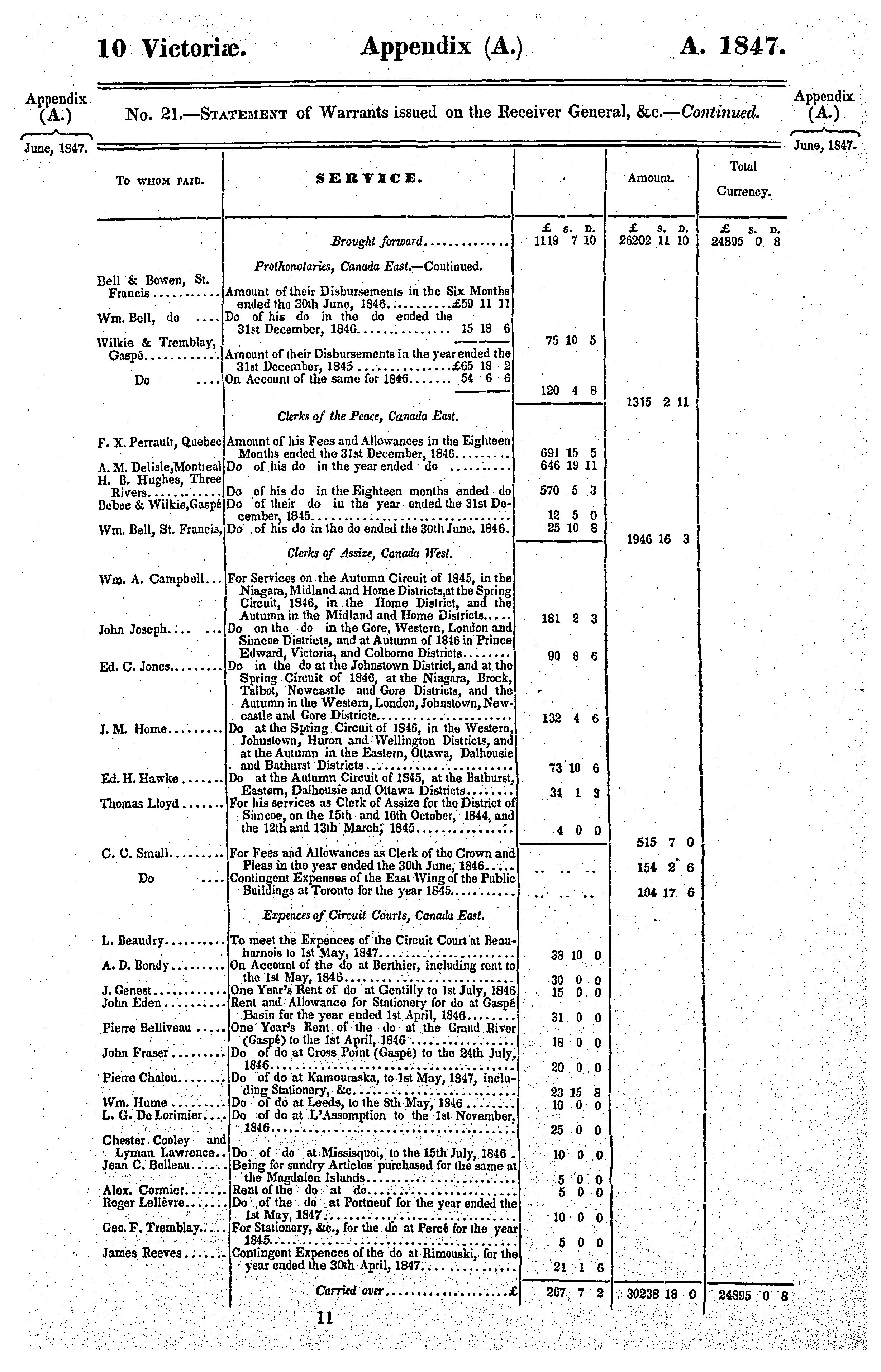 Appendix to the sixth volume of the journals of the Legislative Assembly of the Province of Canada, from the 2nd day of June to the 28th day of July, 1847, both days inclusive, and in the tenth and eleventh years of the reign of Our Sovereign Lady Queen Victoria, being the third session of the second provincial Parliament of Canada, session 1847 : 1847 (no. 1)