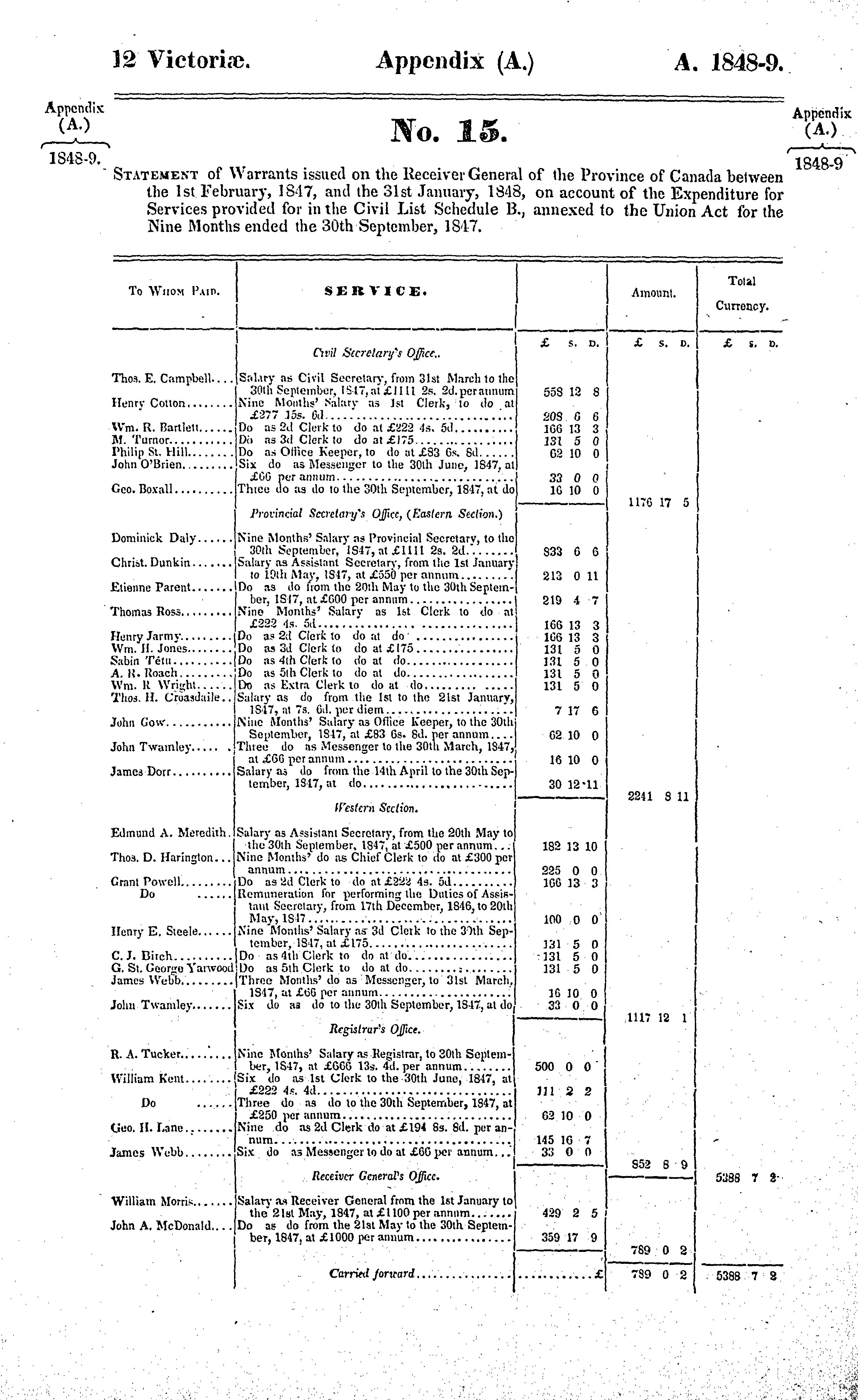 Appendix to the eighth volume of the journals of the Legislative Assembly of the Province of Canada, from the 18th day of January to the 30th day of May, both days inclusive, and in the twelfth year of the reign of Our Sovereign Lady Queen Victoria, being the second session of the third provincial Parliament of Canada, session 1849 : 1849 (no. 1)