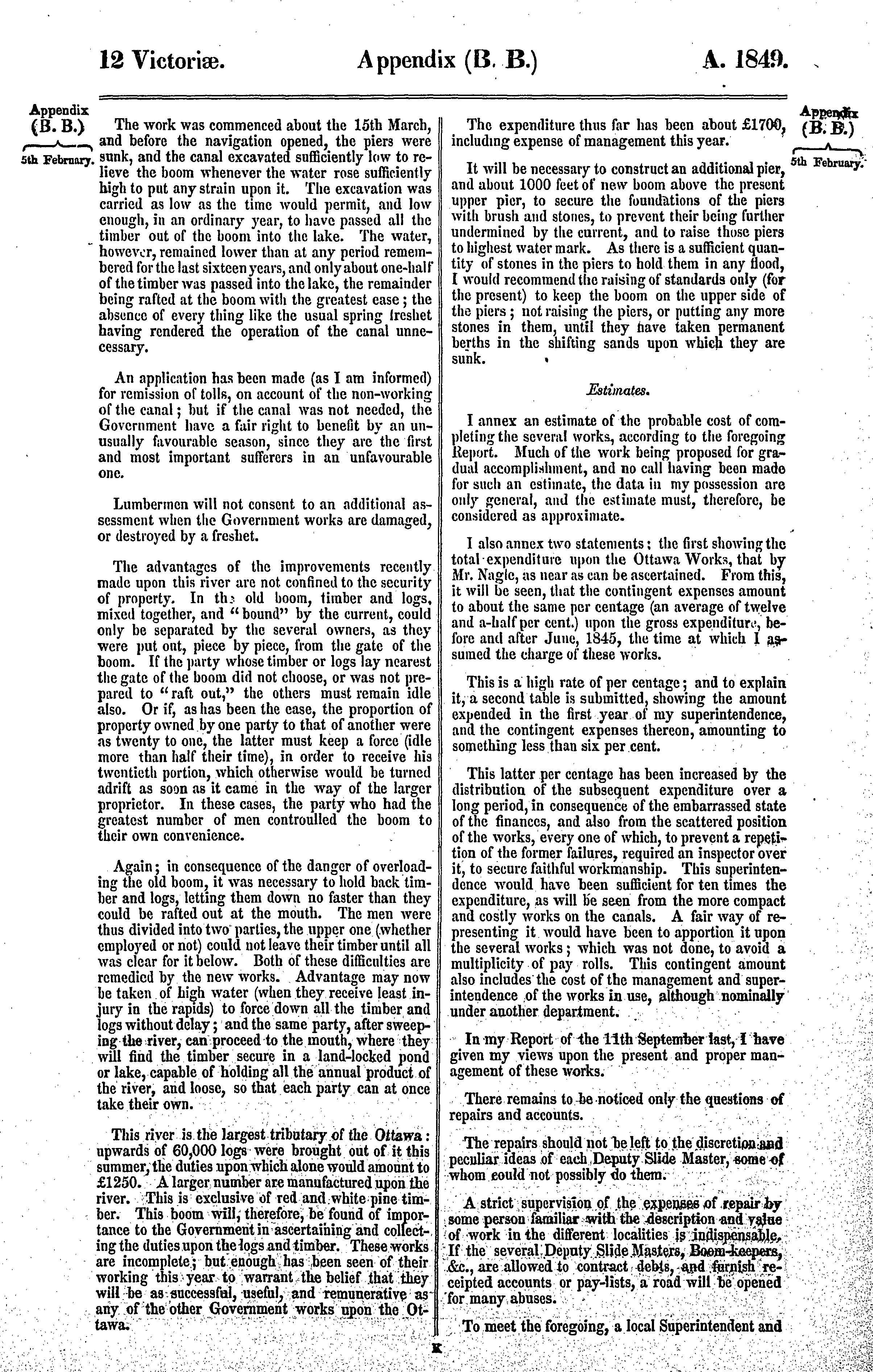 Appendix to the eighth volume of the journals of the Legislative Assembly of the Province of Canada, from the 18th day of January to the 30th day of May, both days inclusive, and in the twelfth year of the reign of Our Sovereign Lady Queen Victoria, being the second session of the third provincial Parliament of Canada, session 1849 : 1849 (no. 2)