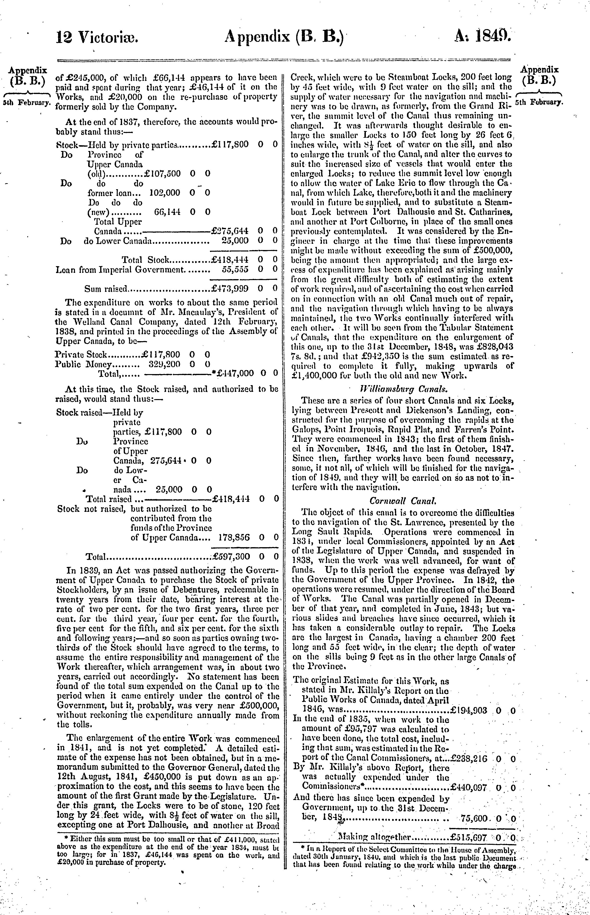 Appendix to the eighth volume of the journals of the Legislative Assembly of the Province of Canada, from the 18th day of January to the 30th day of May, both days inclusive, and in the twelfth year of the reign of Our Sovereign Lady Queen Victoria, being the second session of the third provincial Parliament of Canada, session 1849 : 1849 (no. 2)