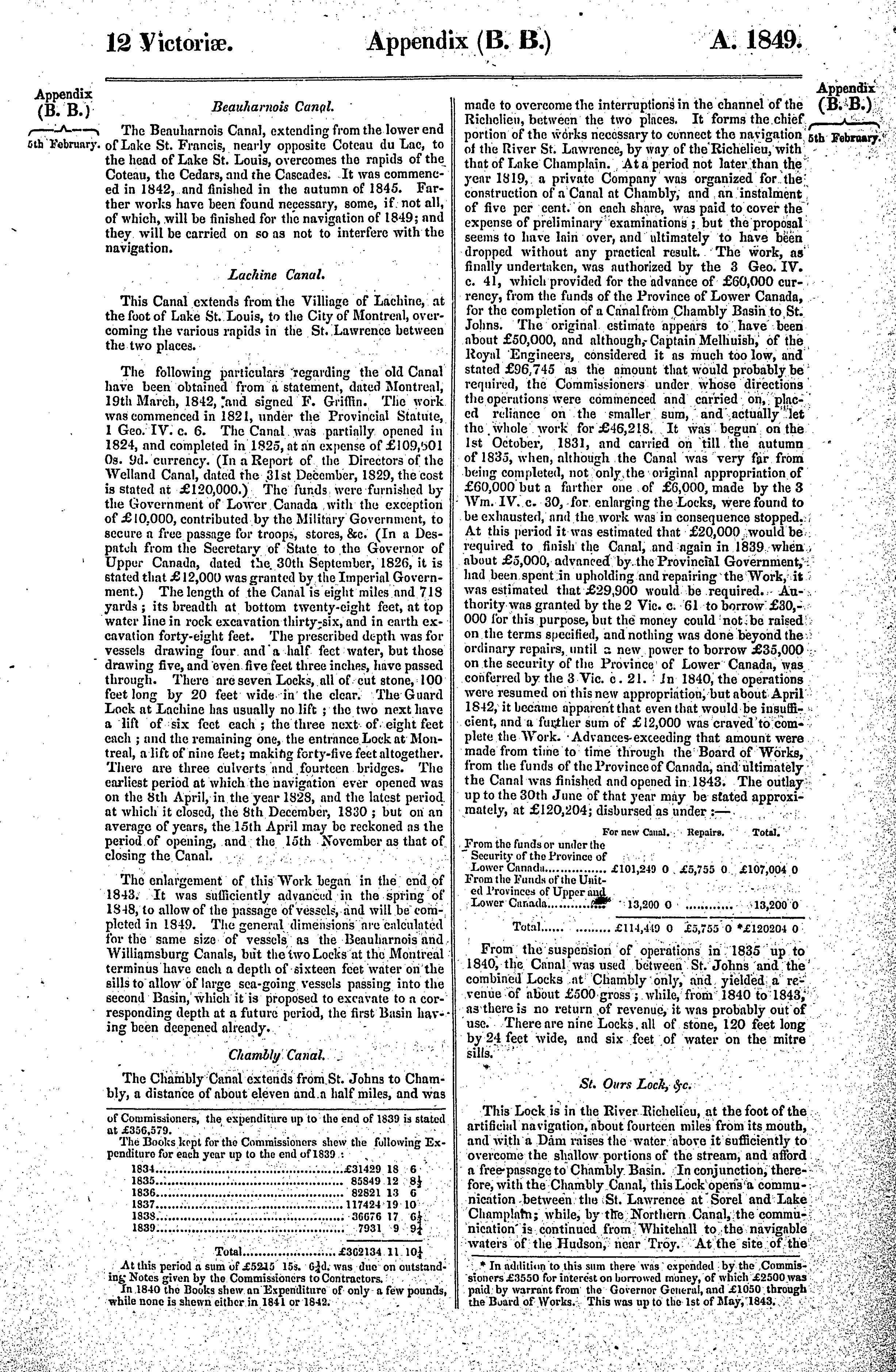 Appendix to the eighth volume of the journals of the Legislative Assembly of the Province of Canada, from the 18th day of January to the 30th day of May, both days inclusive, and in the twelfth year of the reign of Our Sovereign Lady Queen Victoria, being the second session of the third provincial Parliament of Canada, session 1849 : 1849 (no. 2)