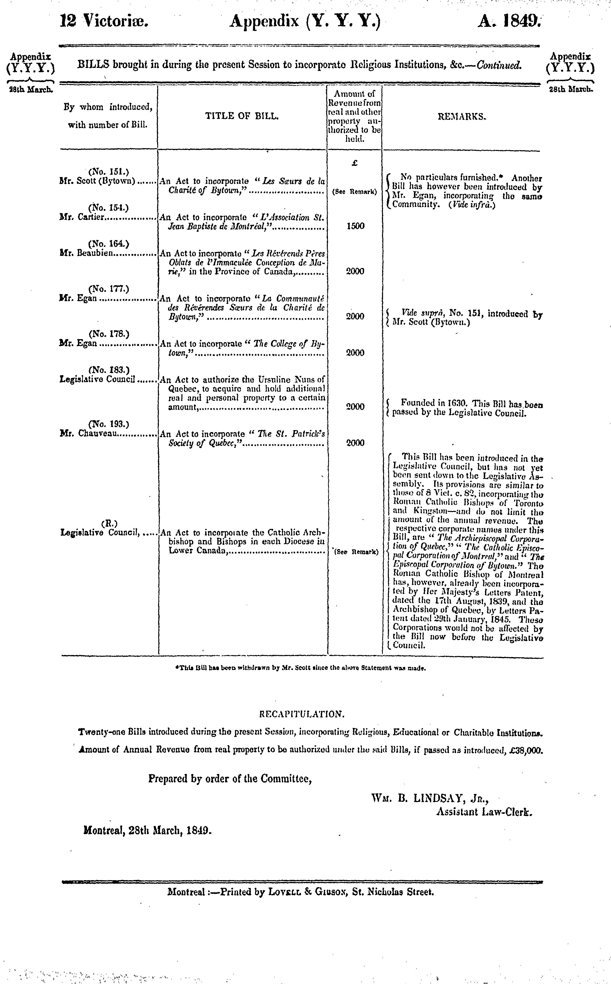 Appendix to the eighth volume of the journals of the Legislative Assembly of the Province of Canada, from the 18th day of January to the 30th day of May, both days inclusive, and in the twelfth year of the reign of Our Sovereign Lady Queen Victoria, being the second session of the third provincial Parliament of Canada, session 1849 : 1849 (no. 2)
