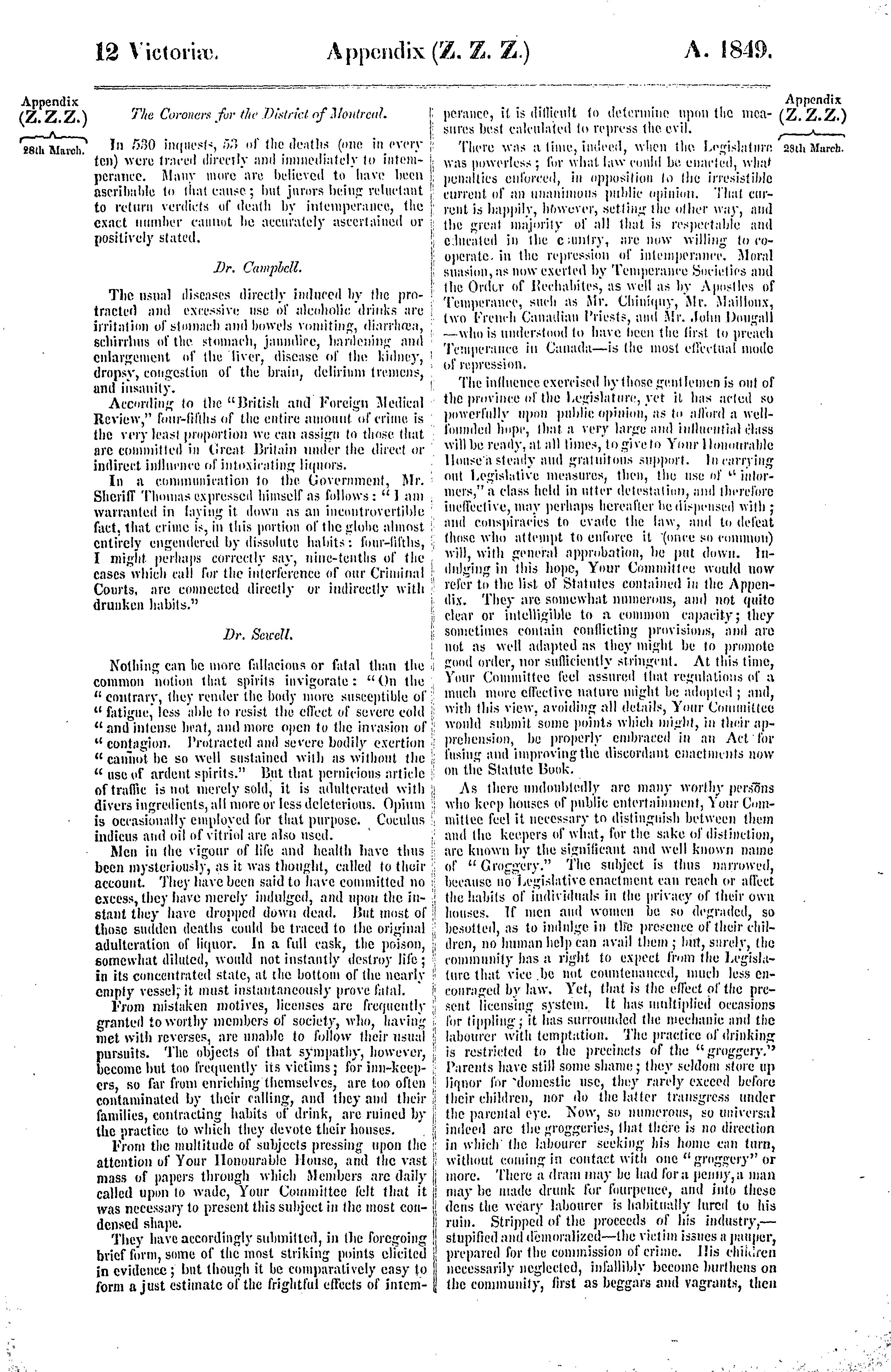Appendix to the eighth volume of the journals of the Legislative Assembly of the Province of Canada, from the 18th day of January to the 30th day of May, both days inclusive, and in the twelfth year of the reign of Our Sovereign Lady Queen Victoria, being the second session of the third provincial Parliament of Canada, session 1849 : 1849 (no. 2)