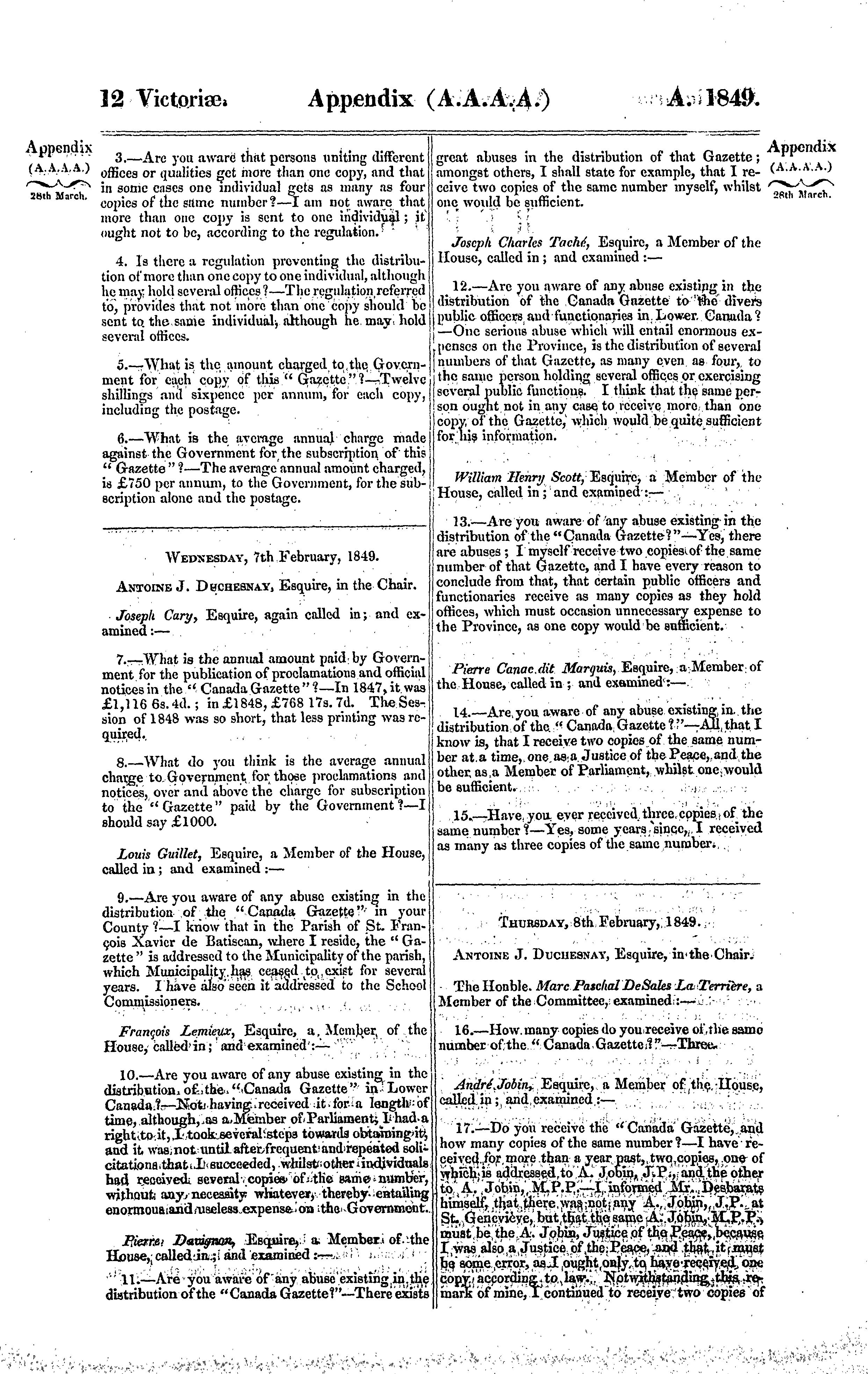 Appendix to the eighth volume of the journals of the Legislative Assembly of the Province of Canada, from the 18th day of January to the 30th day of May, both days inclusive, and in the twelfth year of the reign of Our Sovereign Lady Queen Victoria, being the second session of the third provincial Parliament of Canada, session 1849 : 1849 (no. 2)
