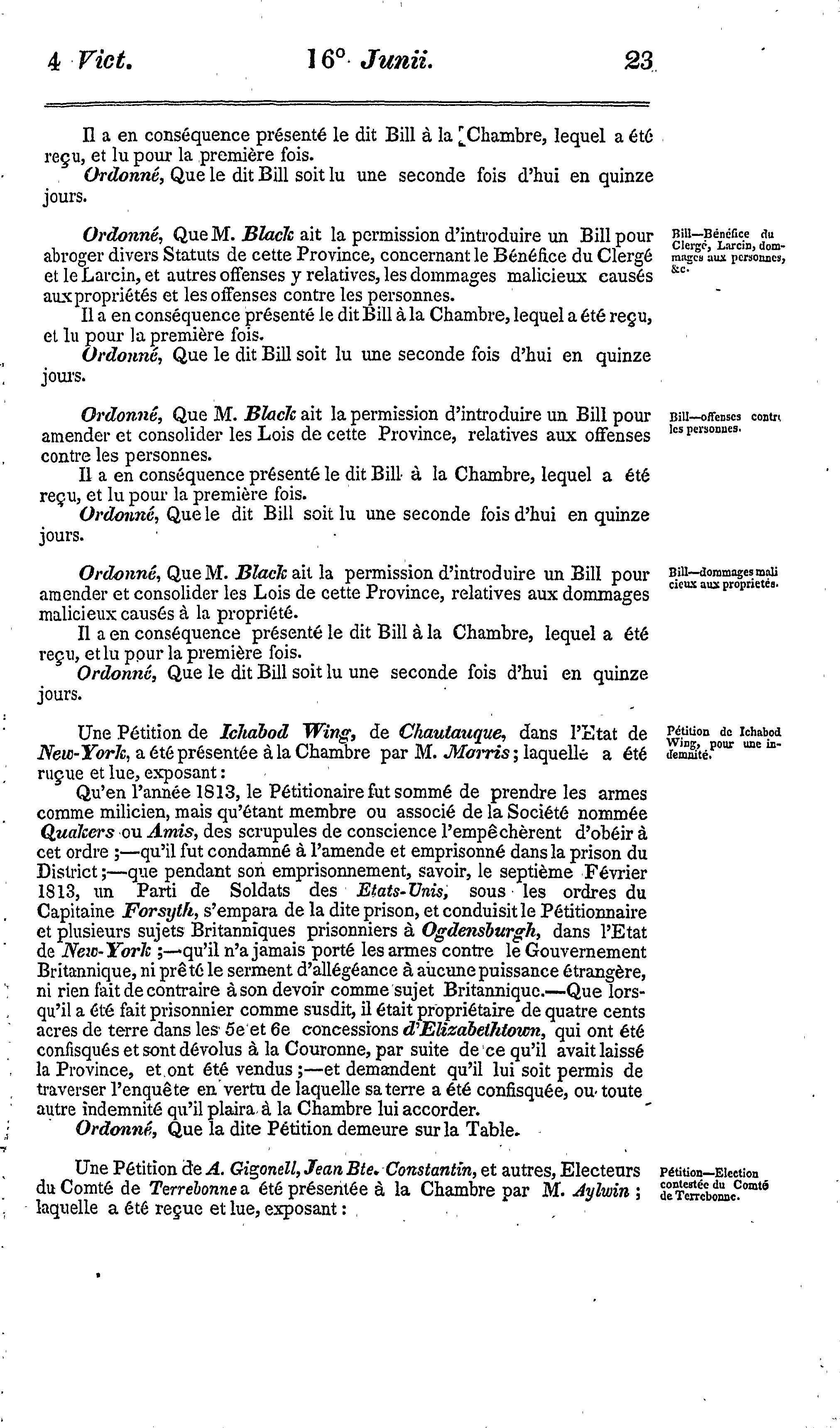 Journaux de l'Assemblée législative de la Province du Canada ... : Journaux de l'Assemblée législative de la Province du Canada, du 14e juin au 18e septembre, 1841, dans les 4e. et 5e. années de notre Souveraine, la Reine Victoria, première session du Parlement provincial du Canada, session 1841 : 1841