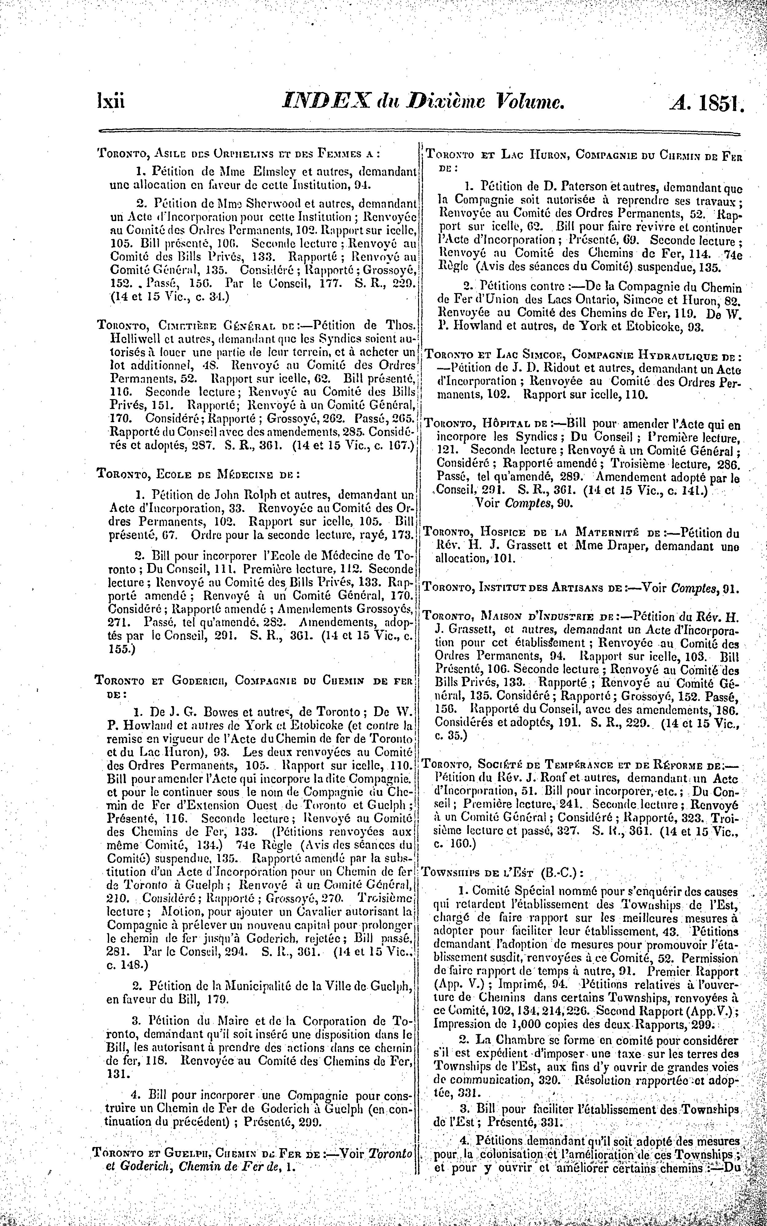 Journaux de l'Assemblée législative de la Province du Canada depuis le 20me jour de mai, jusqu'au 30me jour d'aout, ces deux jours inclus, étant les 14me et 15me années du règne de notre souveraine dame la Reine Victoria : étant la quatrième session du troisième Parlement provincial du Canada : 1851