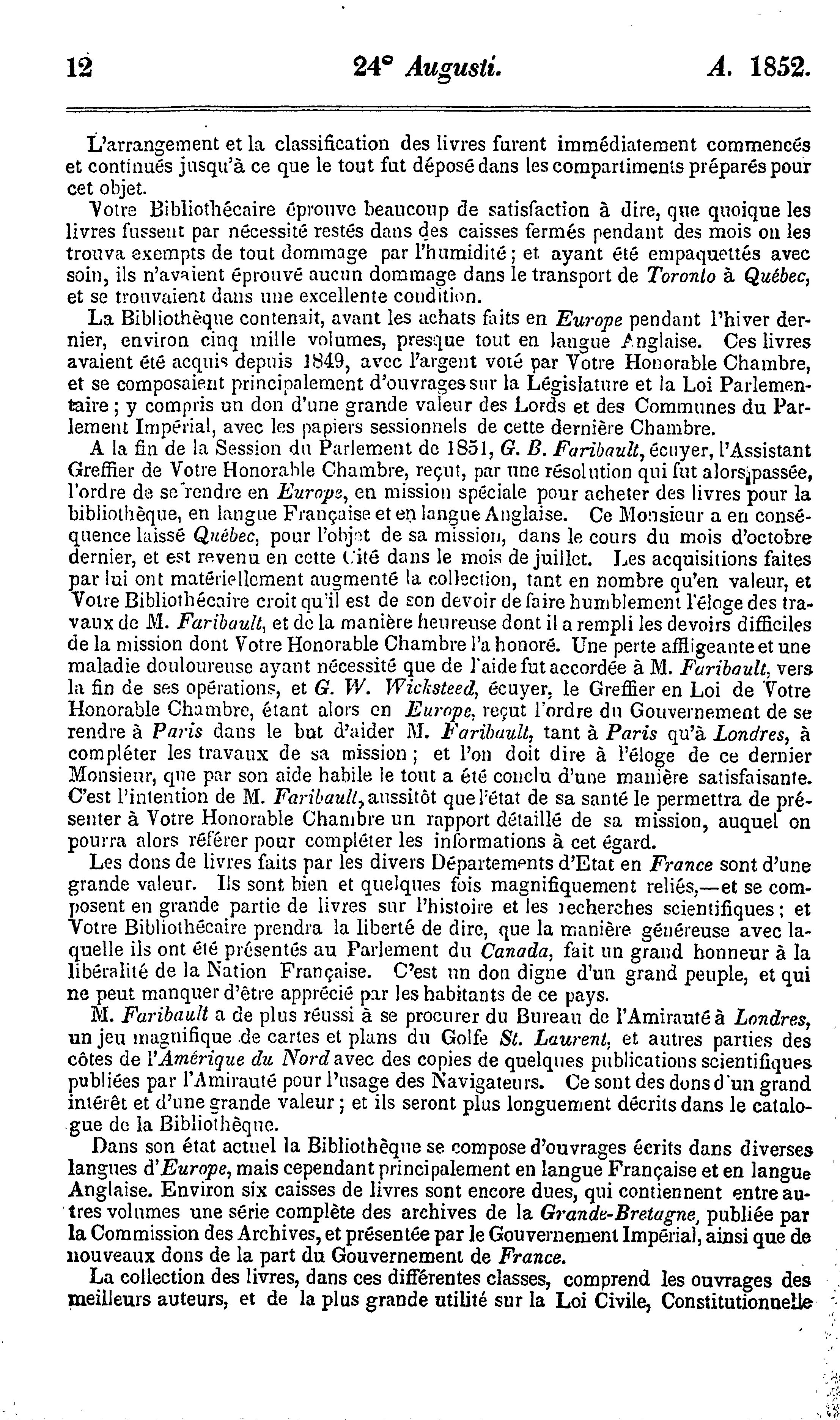 Journaux de l'Assemblée législative de la Province du Canada depuis le 19me jour d'août 1852, jusqu'au 14me jour de juin 1853, ces deux jours inclus, et dans la seizième année du règne de notre souveraine dame la Reine Victoria : étant la première session du quatrième Parlement provincial du Canada : Ière partie, du 19 août 1852 au 4 mai 1853 : 1852/53 (pt. 1)