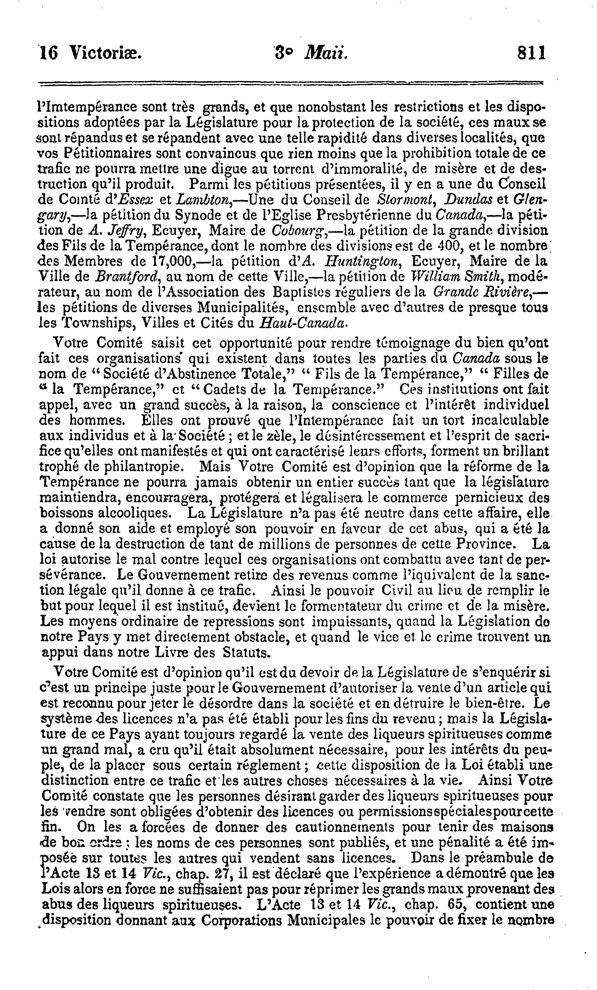 Journaux de l'Assemblée législative de la Province du Canada depuis le 19me jour d'août 1852, jusqu'au 14me jour de juin 1853, ces deux jours inclus, et dans la seizième année du règne de notre souveraine dame la Reine Victoria : étant la première session du quatrième Parlement provincial du Canada : Ière partie, du 19 août 1852 au 4 mai 1853 : 1852/53 (pt. 1)