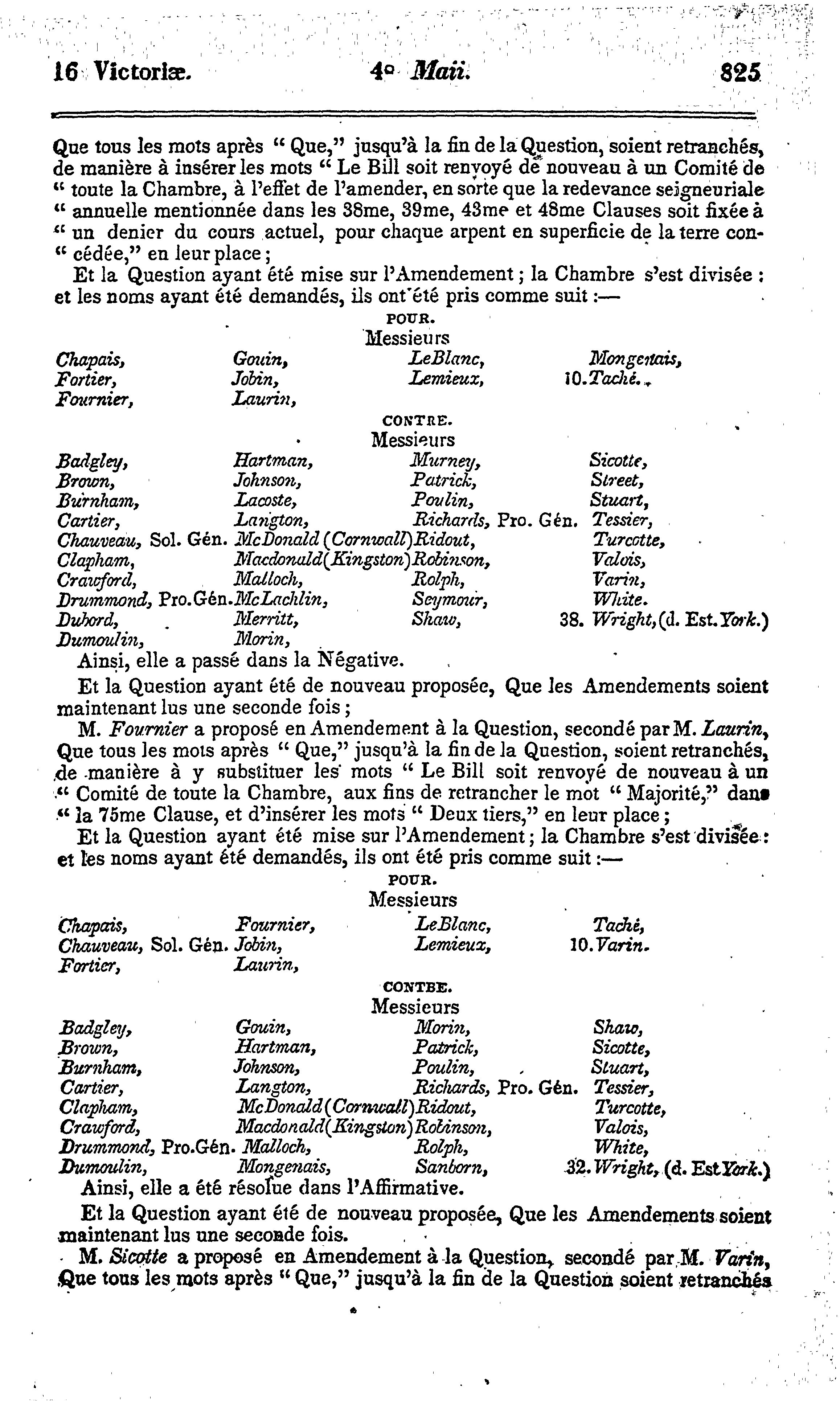 Journaux de l'Assemblée législative de la Province du Canada ... : Journaux de l'Assemblée législative de la Province du Canada depuis le 19me jour d'août 1852, jusqu'au 14me jour de juin 1853, ces deux jours inclus, et dans la seizième année du règne de notre souveraine dame la Reine Victoria : étant la première session du quatrième Parlement provincial du Canada : IIme partie, du 4 mai 1853 au 14 juin 1853 : 1852/53 (pt. 2)