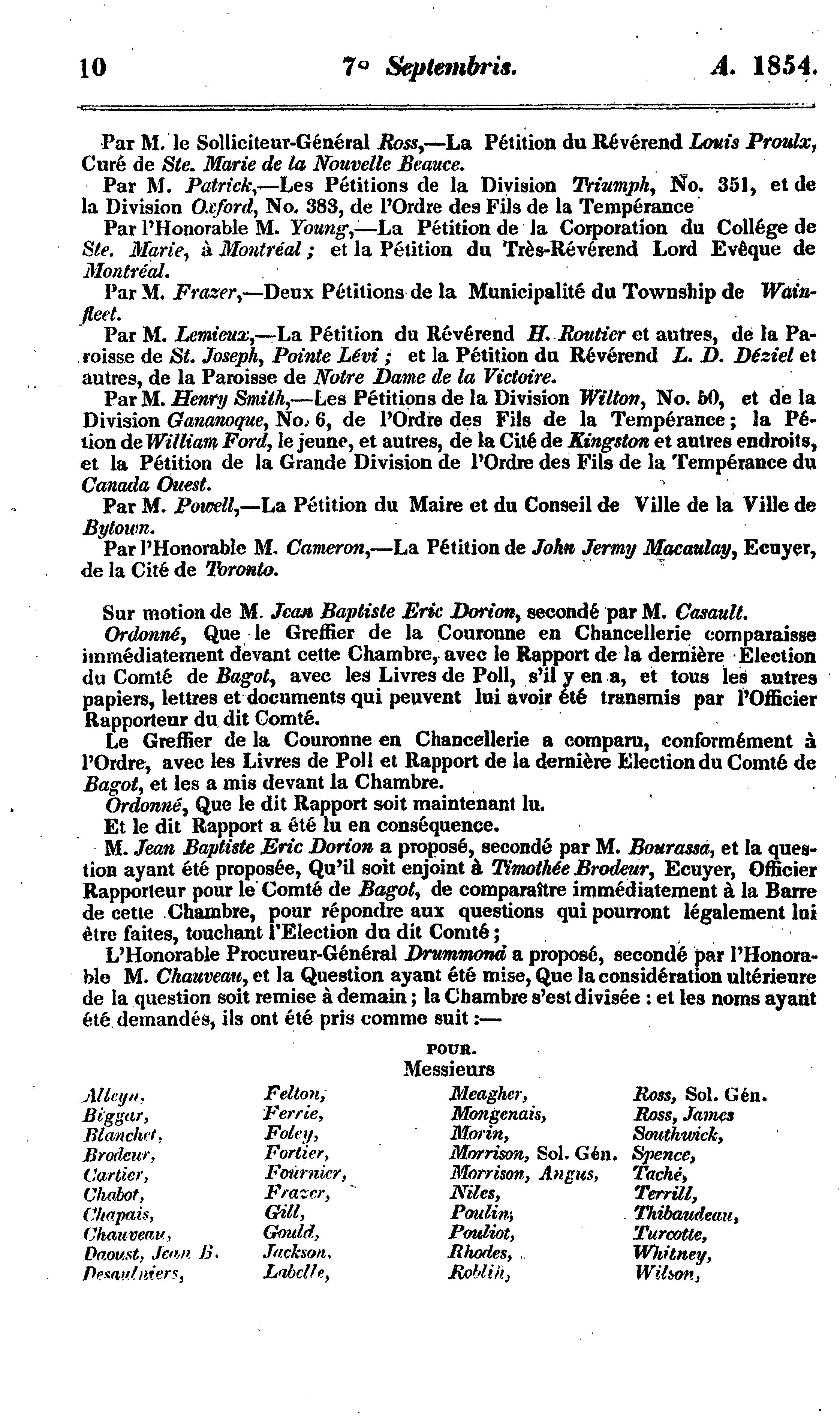 Journaux de l'Assemblée législative de la Province du Canada ... : Journaux de l'Assemblée législative de la Province du Canada depuis le 5 septembre jusqu'au 18 décembre 1854, ces deux jours inclus, dans la dix-huitième année du règne de notre souveraine dame la Reine Victoria : première session du 5me Parlement provincial du Canada : (première partie) : 1854/55 (pt. 1)