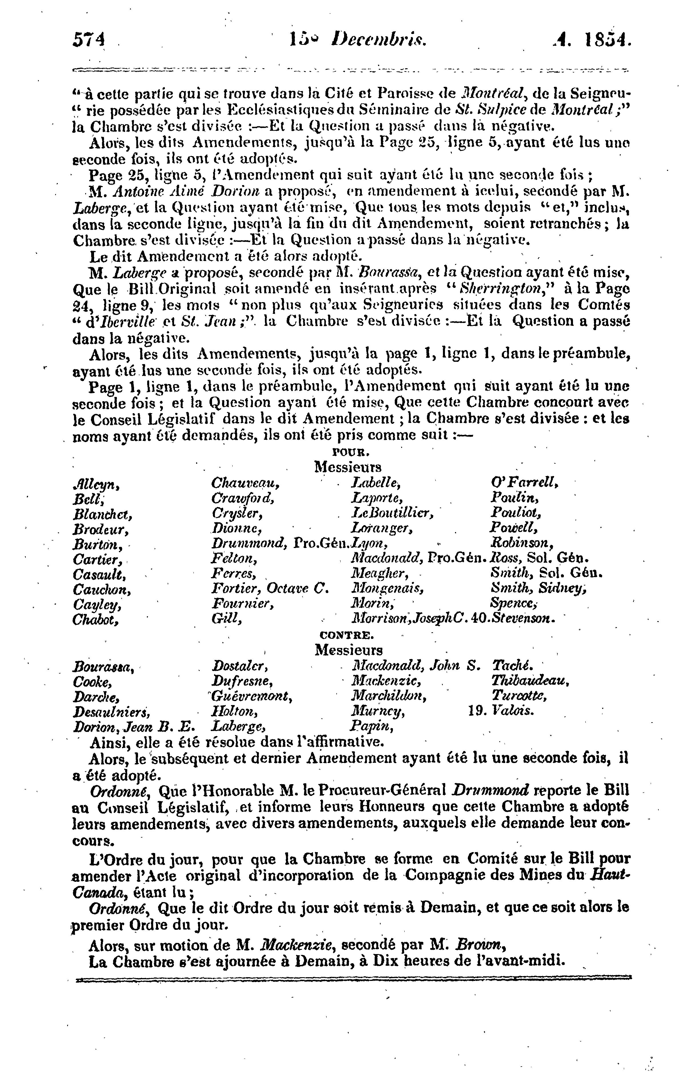 Journaux de l'Assemblée législative de la Province du Canada depuis le 5 septembre jusqu'au 18 décembre 1854, ces deux jours inclus, dans la dix-huitième année du règne de notre souveraine dame la Reine Victoria : première session du 5me Parlement provincial du Canada : (première partie) : 1854/55 (pt. 1)