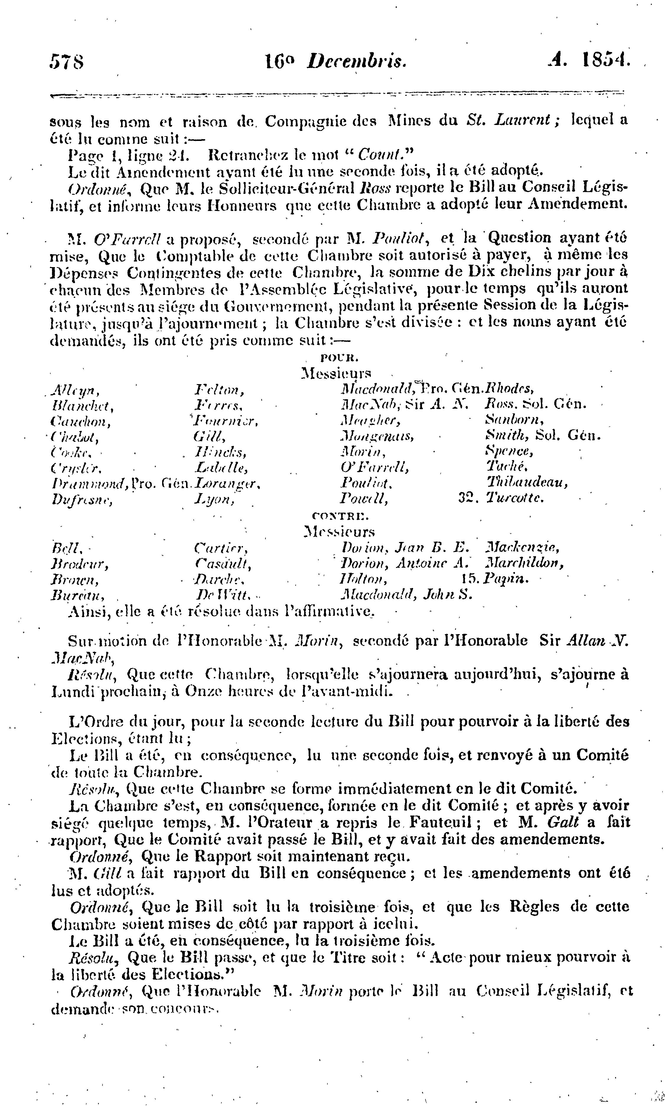 Journaux de l'Assemblée législative de la Province du Canada depuis le 5 septembre jusqu'au 18 décembre 1854, ces deux jours inclus, dans la dix-huitième année du règne de notre souveraine dame la Reine Victoria : première session du 5me Parlement provincial du Canada : (première partie) : 1854/55 (pt. 1)