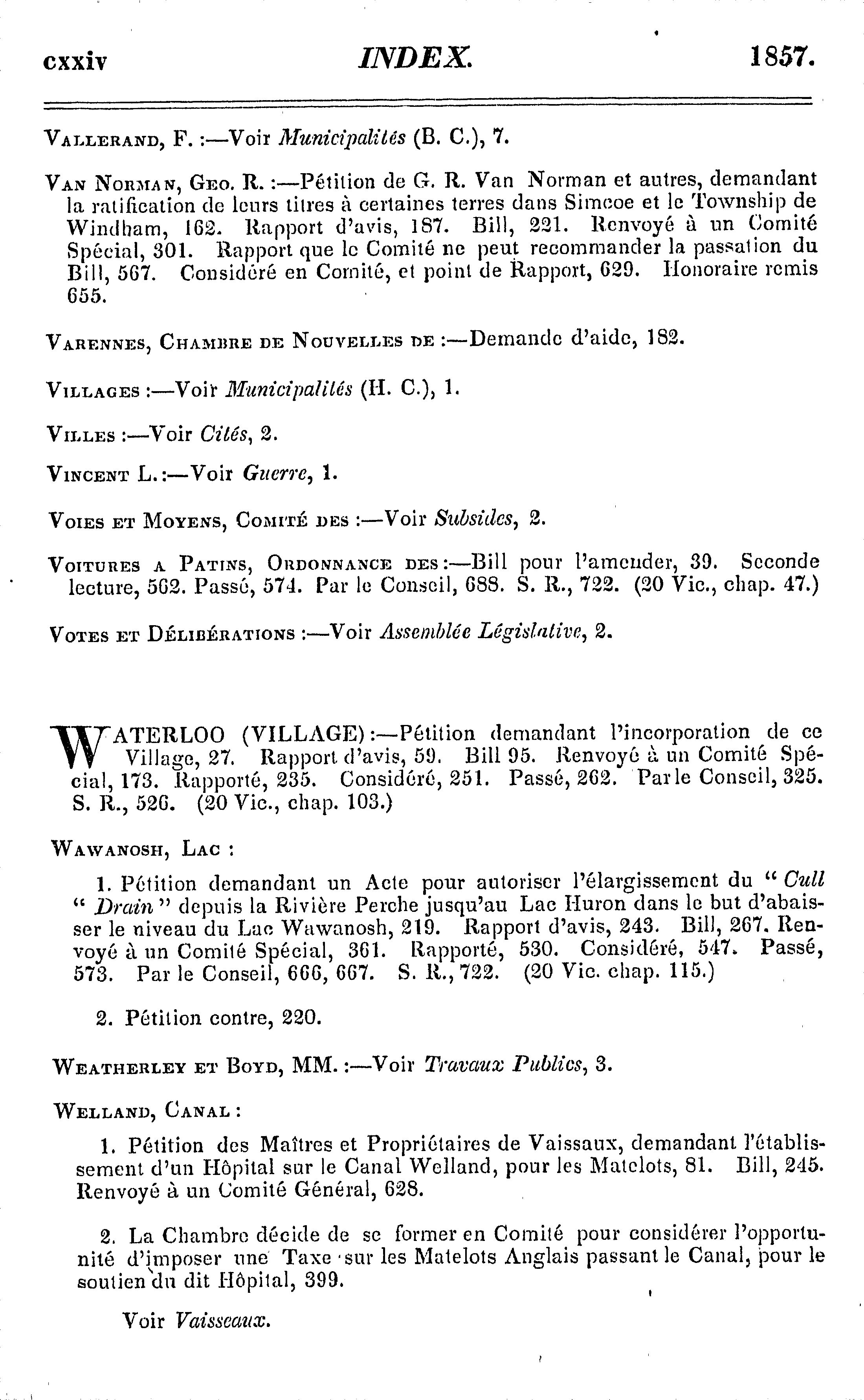 Journaux de l'Assemblée législative de la Province du Canada depuis le 26 février jusqu'au 10 juin 1857, inclusivement, dans la vingtième année du règne de notre souveraine dame la Reine Victoria : étant la 3me session du 5me Parlement provincial du Canada : 1857