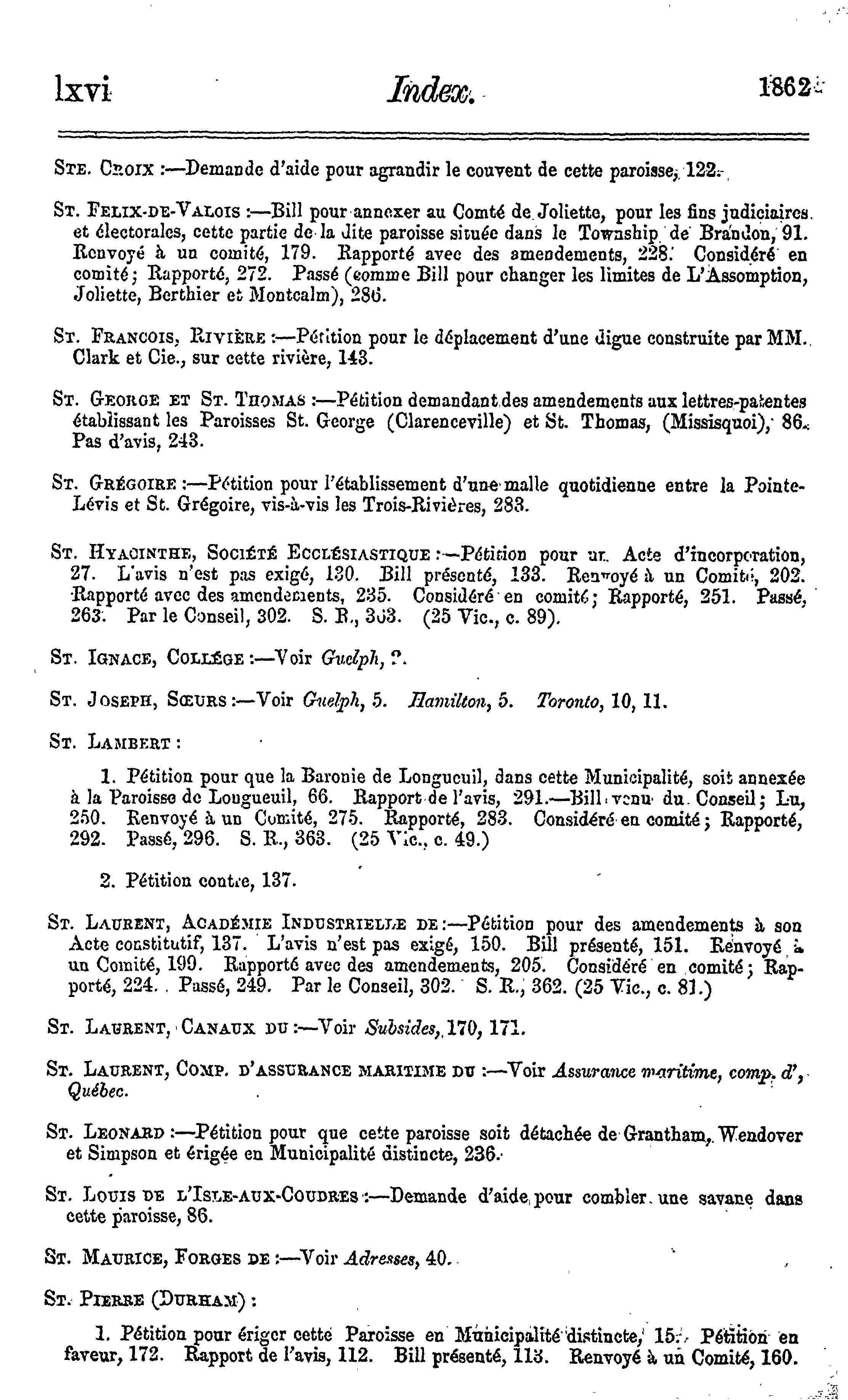 Journaux de l'Assemblée législative de la Province du Canada depuis le 26 mars jusqu'au 9 juin 1862, ces deux jours inclus, dans la vingt-cinquième année du règne de notre souveraine dame la Reine Victoria : étant la 1re Session du 7me Parlement provincial du Canada : 1862