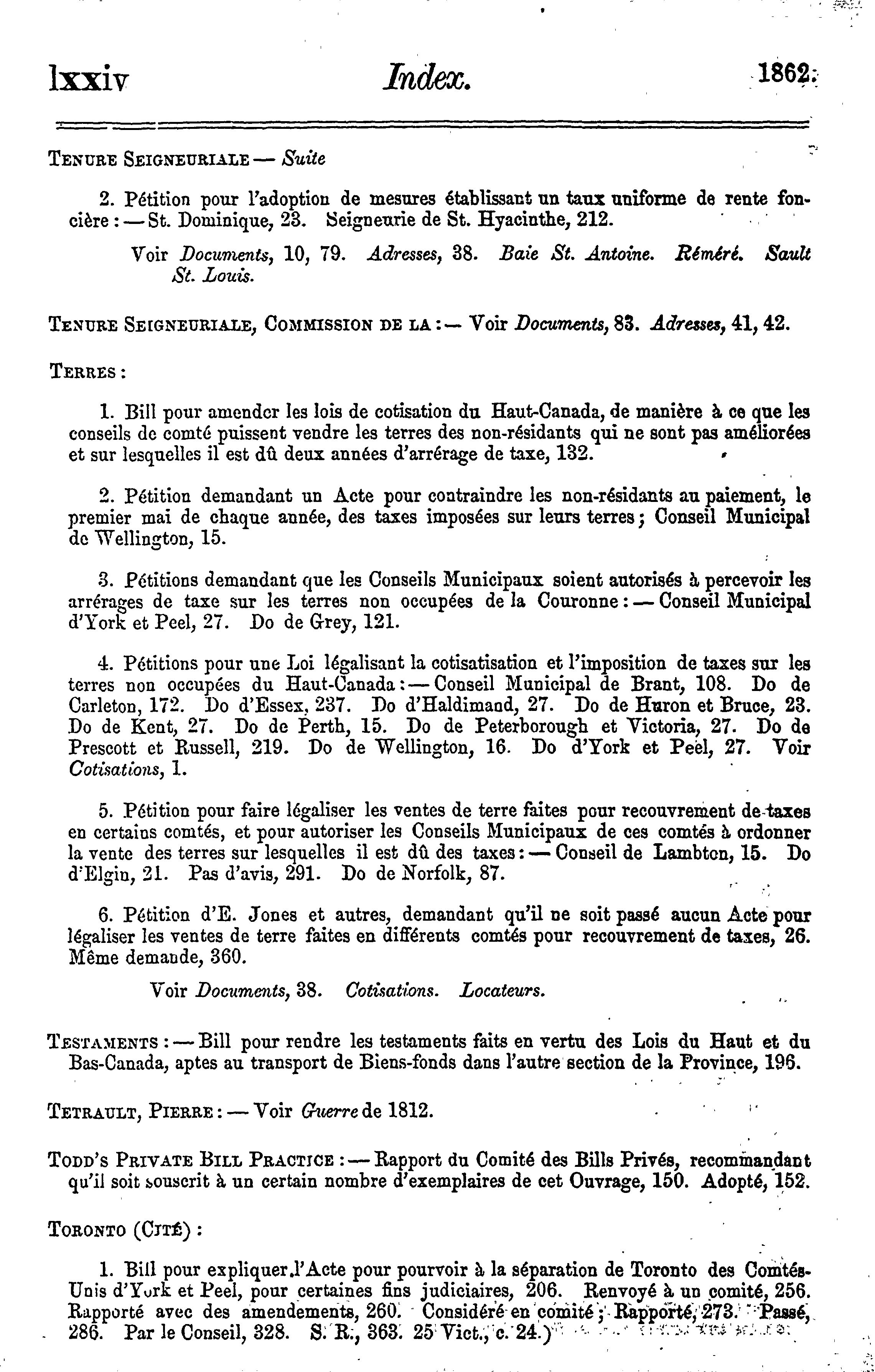Journaux de l'Assemblée législative de la Province du Canada depuis le 26 mars jusqu'au 9 juin 1862, ces deux jours inclus, dans la vingt-cinquième année du règne de notre souveraine dame la Reine Victoria : étant la 1re Session du 7me Parlement provincial du Canada : 1862