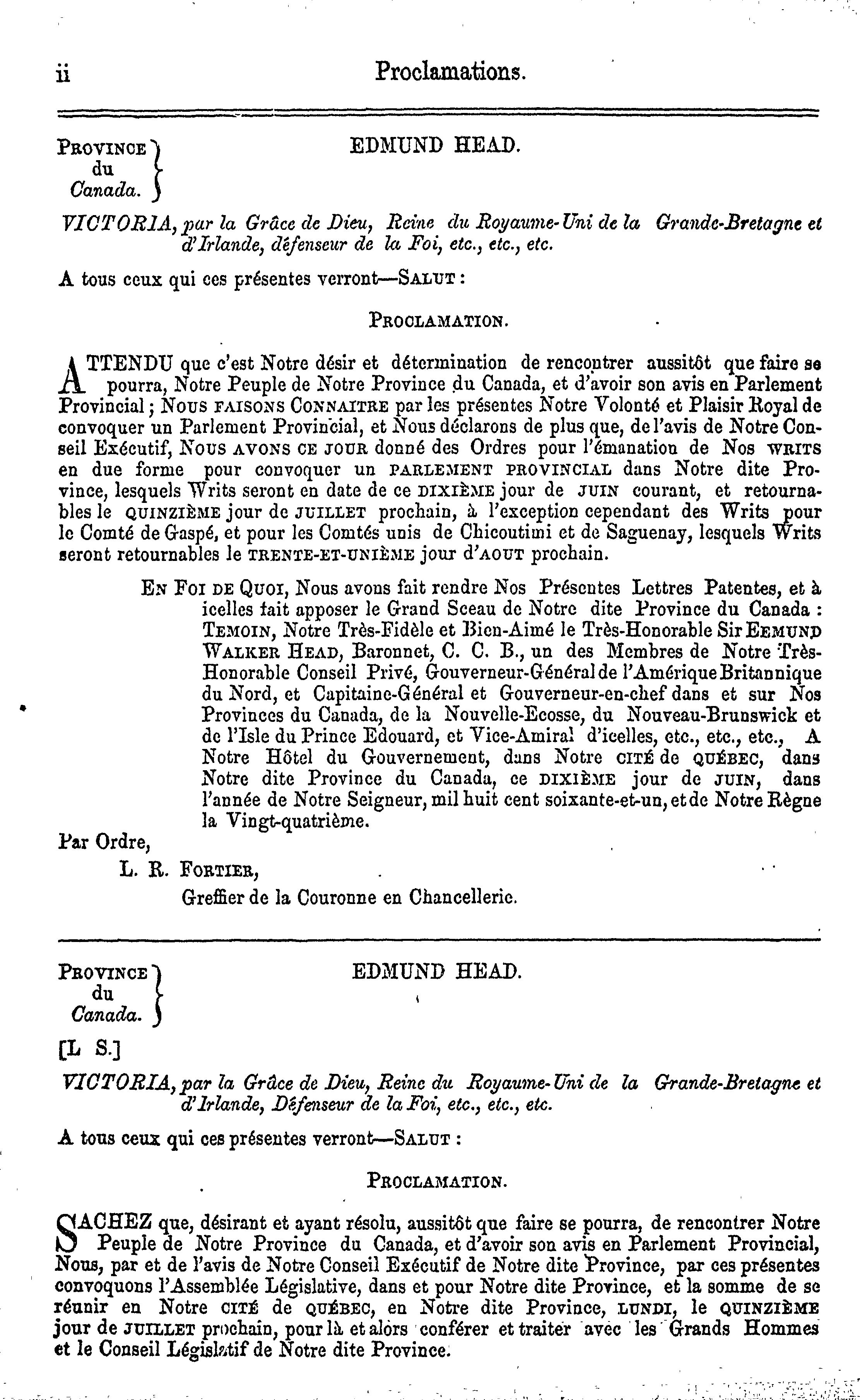 Journaux de l'Assemblée législative de la Province du Canada depuis le 26 mars jusqu'au 9 juin 1862, ces deux jours inclus, dans la vingt-cinquième année du règne de notre souveraine dame la Reine Victoria : étant la 1re Session du 7me Parlement provincial du Canada : 1862