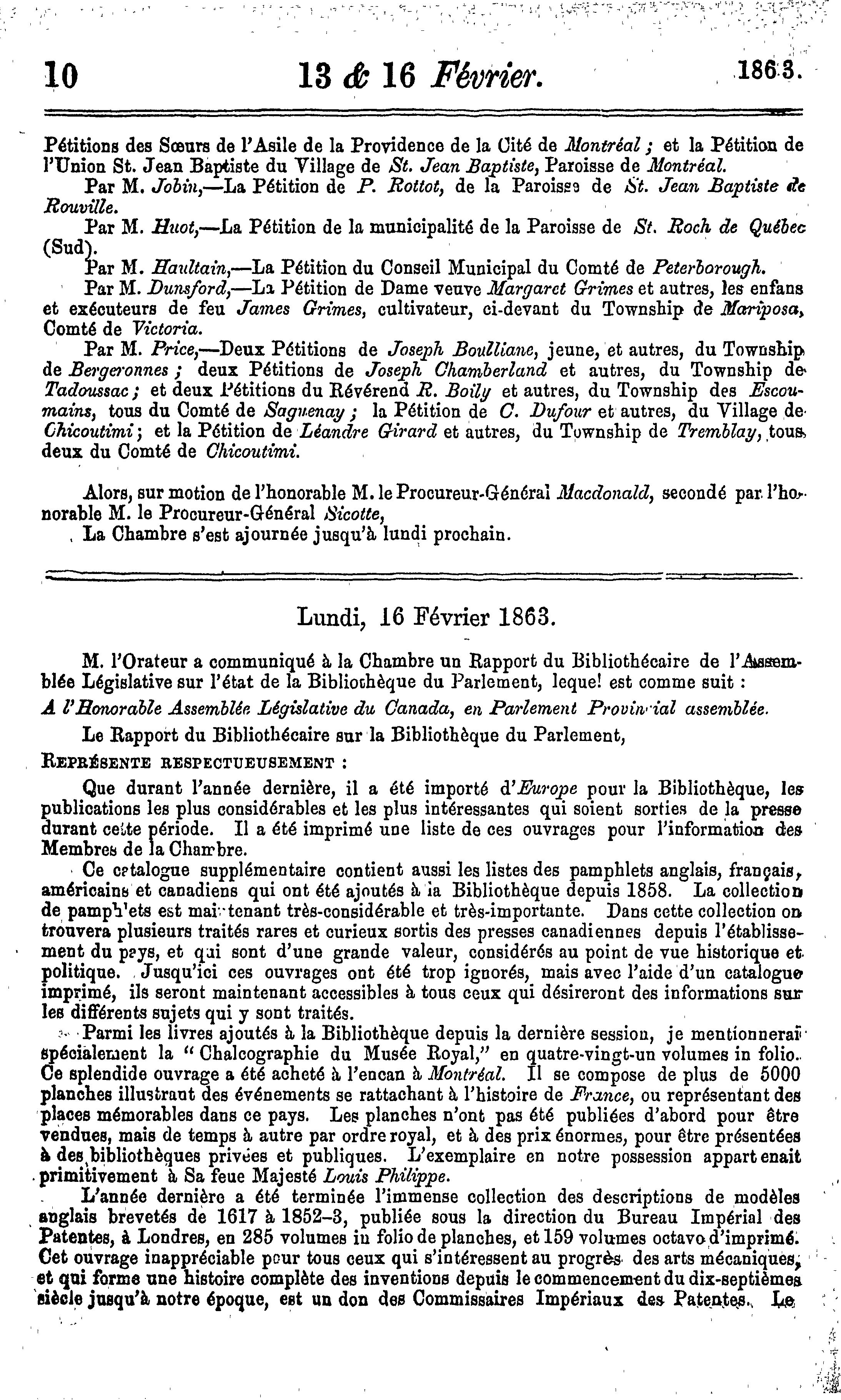 Journaux de l'Assemblée législative de la Province du Canada ... : Journaux de l'Assemblée législative de la Province du Canada du 12 février au 12 mai 1863, les deux jours inclusivement, dans la vingt-sixième année du règne de notre souveraine dame la Reine Victoria : étant la 2e session du 7e Parlement provincial du Canada : 1863