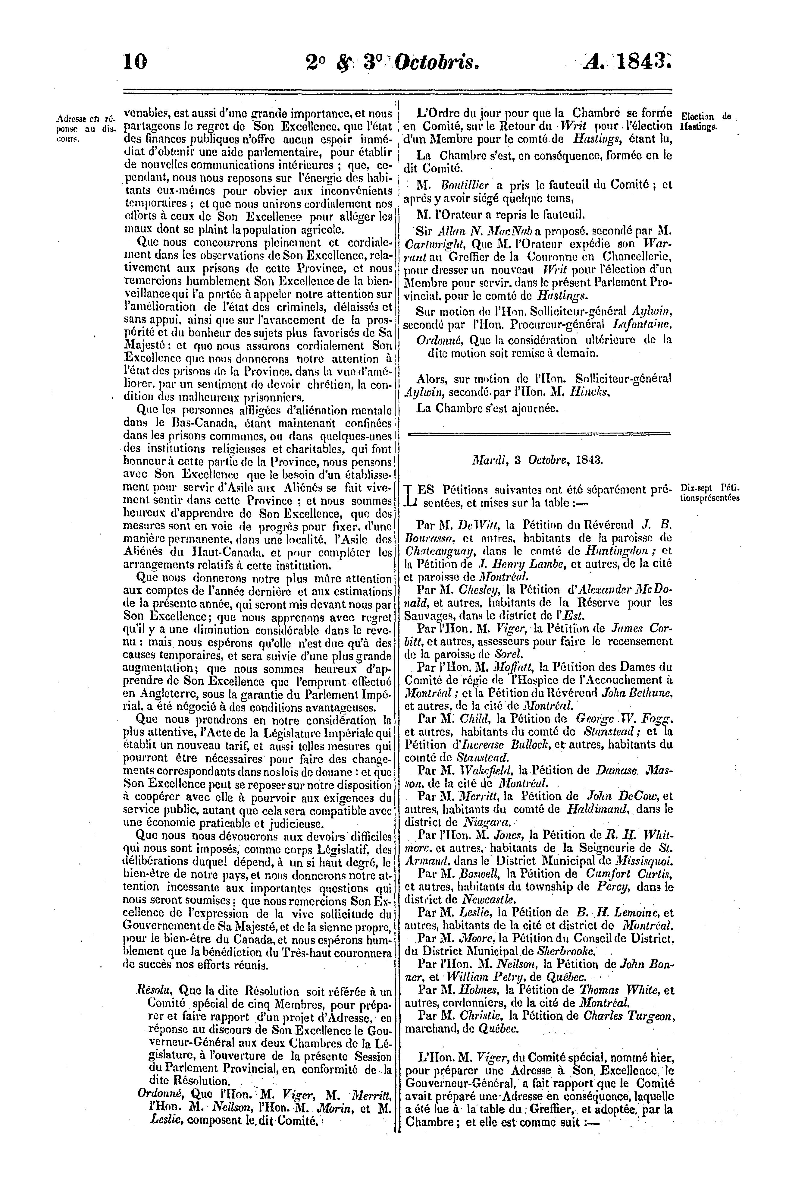 Journaux de l'Assemblée législative de la Province du Canada ... : Journaux de l'Assemblée législative de la Province du Canada, du 28 septembre au 9 décembre, de l'année de notre seigneur 1843 et dans la septième année du règne de notre Souveraine la Reine Victoria, troisième session du premier Parlement provincial du Canada : 1843