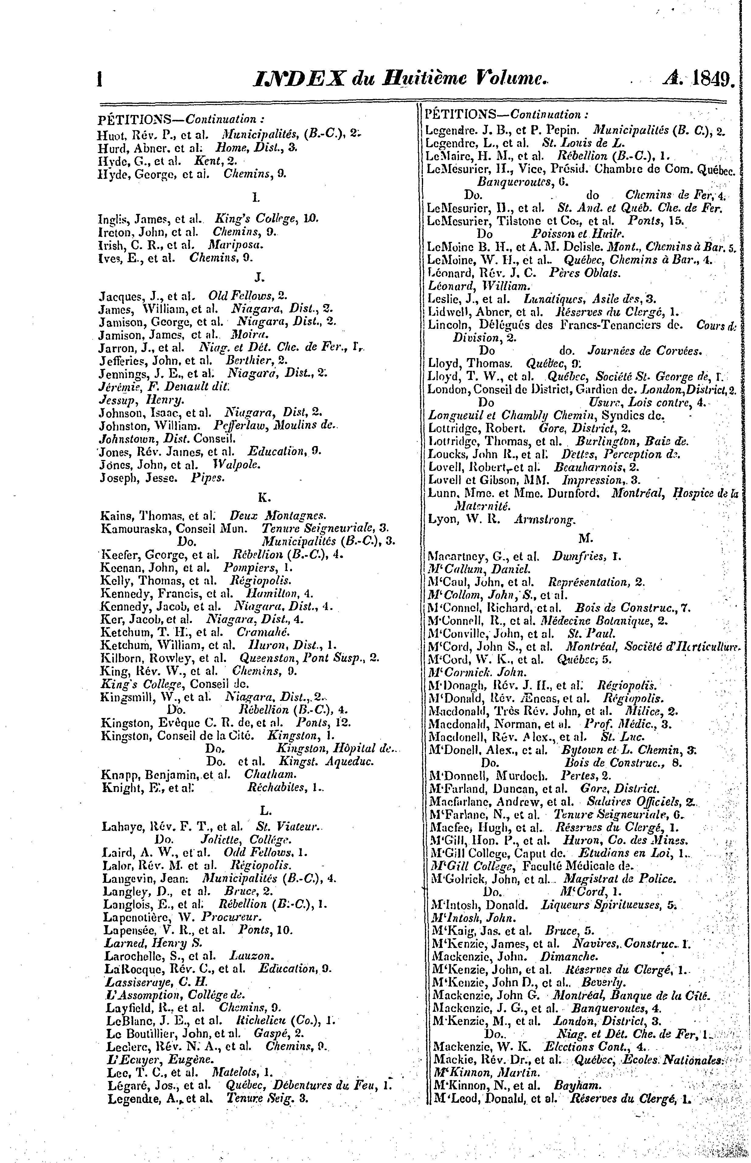 Journaux de l'Assemblée législative de la Province du Canada depuis le 18me jour de janvier jusqu'au 30me jour de mai, ces deux jours inclus, et dans la douzième année du règne de notre souveraine dame la Reine Victoria : étant la deuxième session du troisième Parlement provincial du Canada : 1849