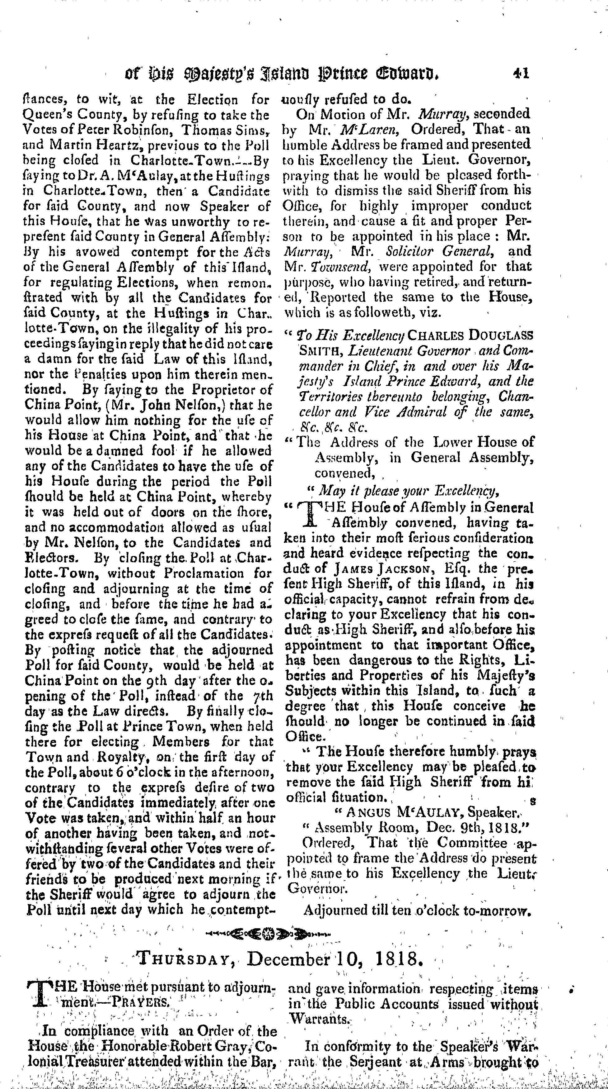 Journal of the House of Assembly of His Majesty's Island Prince Edward : anno quinquagesimo nono, Regis Georgii III, first session of the tenth General Assembly : 1818/1819