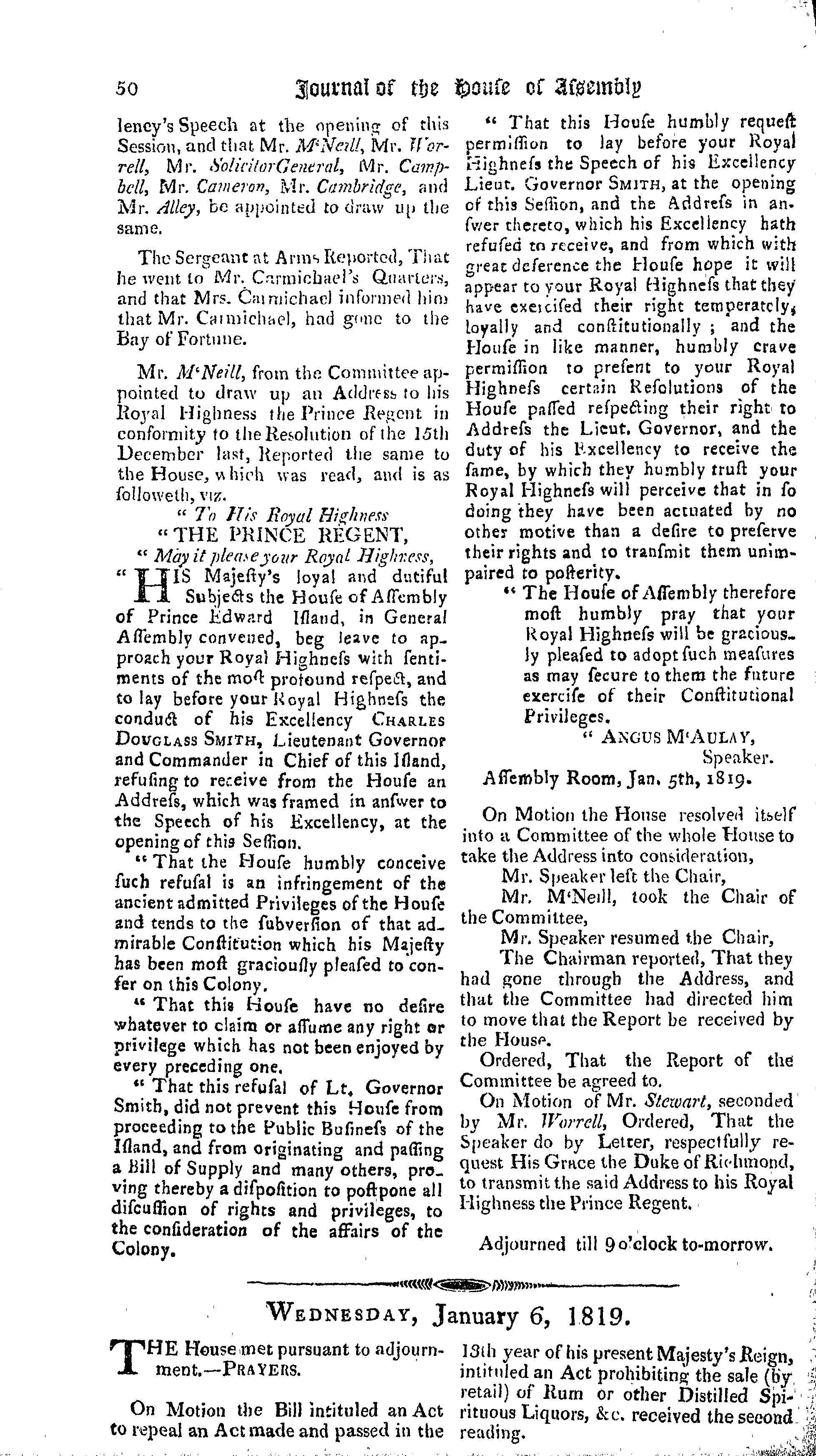 Journal of the House of Assembly of Prince Edward Island ... : Journal of the House of Assembly of His Majesty's Island Prince Edward : anno quinquagesimo nono, Regis Georgii III, first session of the tenth General Assembly : 1818/1819