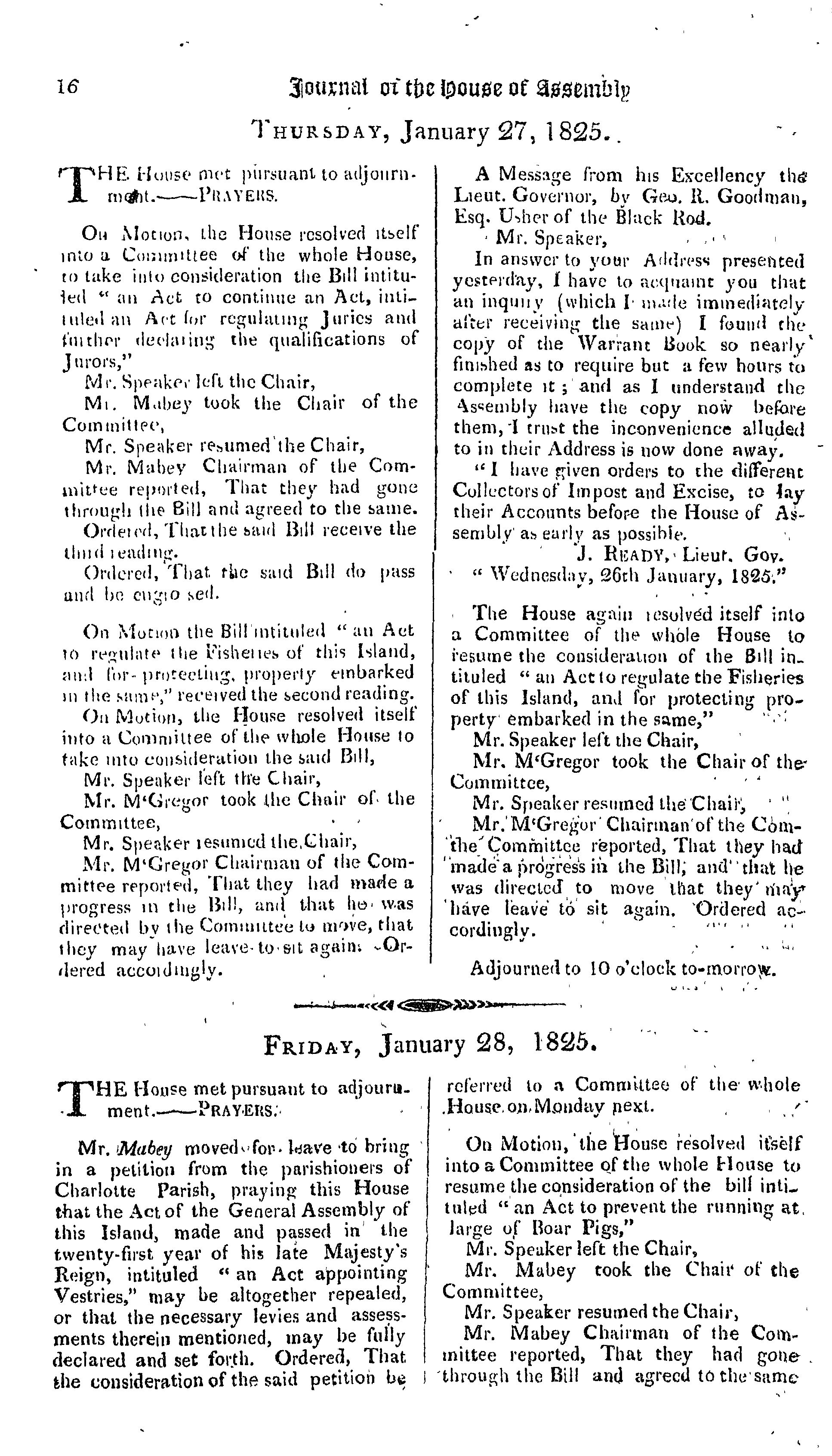 Journal of the House of Assembly of Prince Edward Island ... : Journal of the House of Assembly of His Majesty's Island Prince Edward : first session of the twelfth General Assembly : 1825