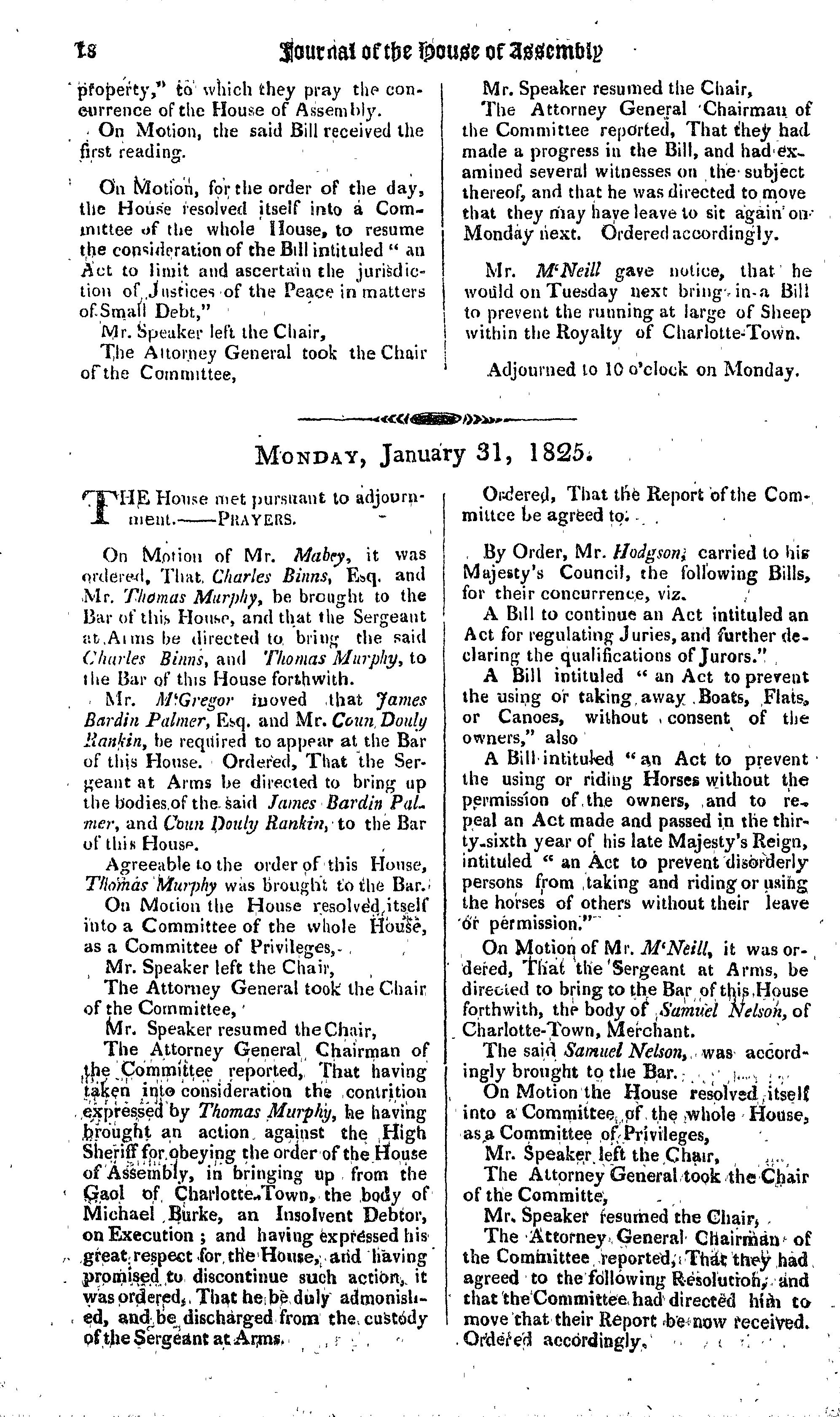 Journal of the House of Assembly of Prince Edward Island ... : Journal of the House of Assembly of His Majesty's Island Prince Edward : first session of the twelfth General Assembly : 1825