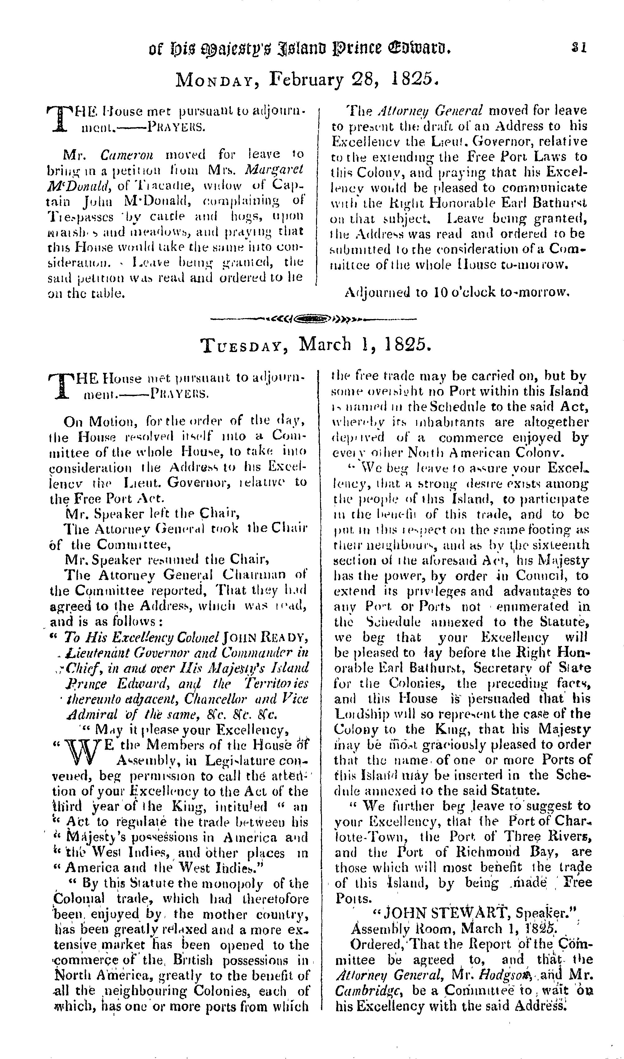 Journal of the House of Assembly of Prince Edward Island ... : Journal of the House of Assembly of His Majesty's Island Prince Edward : first session of the twelfth General Assembly : 1825