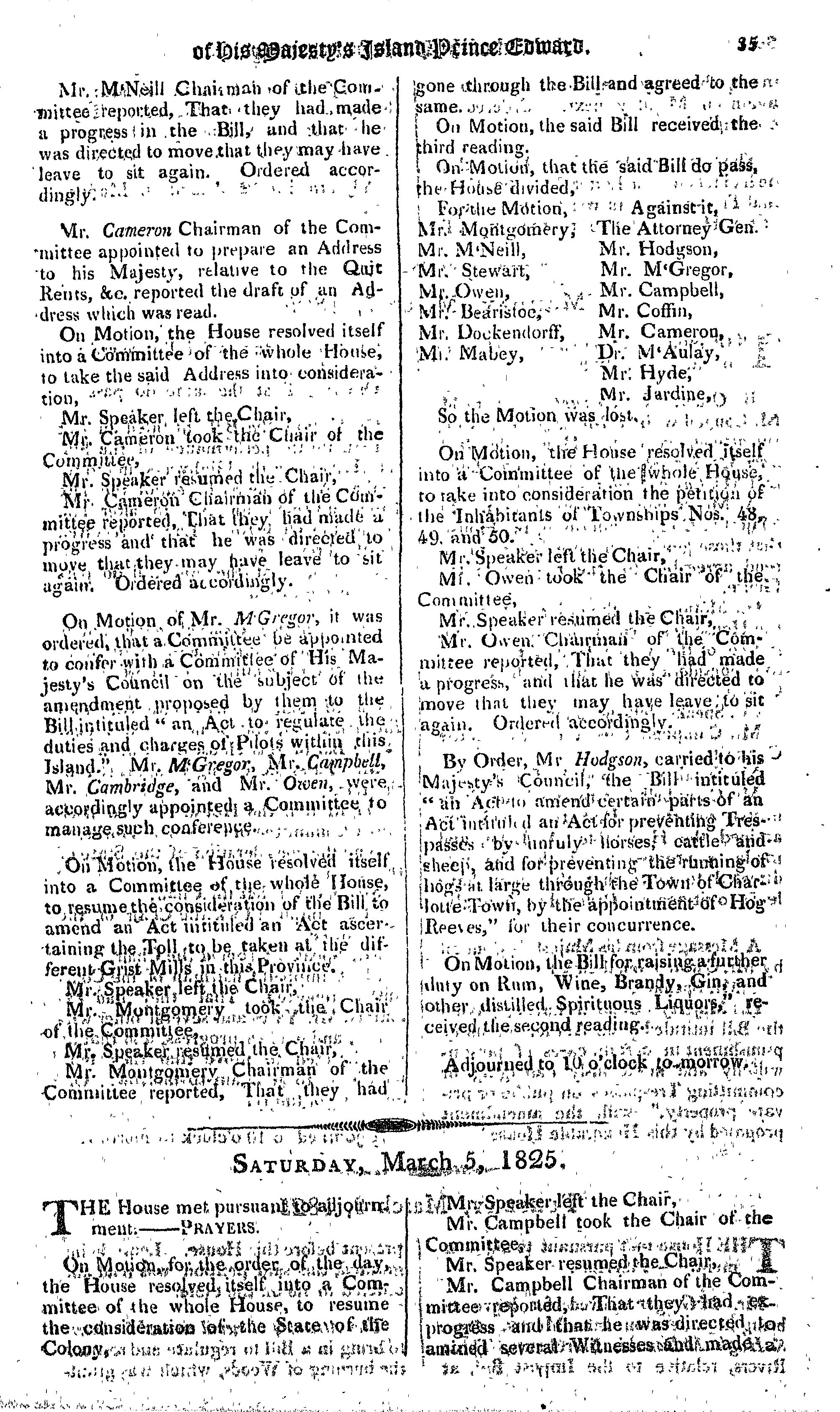 Journal of the House of Assembly of Prince Edward Island ... : Journal of the House of Assembly of His Majesty's Island Prince Edward : first session of the twelfth General Assembly : 1825