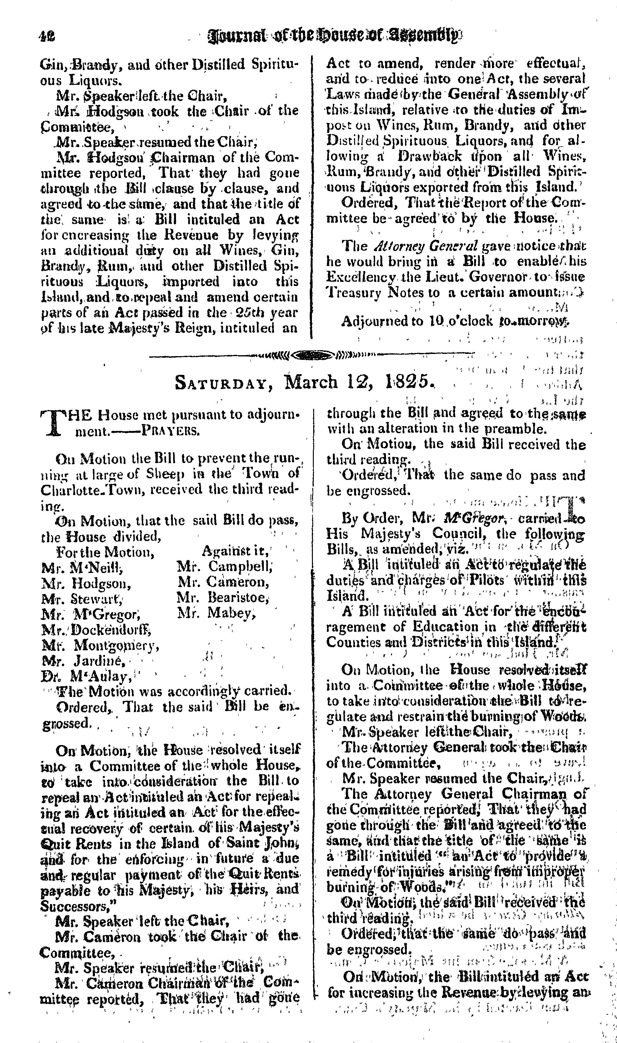 Journal of the House of Assembly of Prince Edward Island ... : Journal of the House of Assembly of His Majesty's Island Prince Edward : first session of the twelfth General Assembly : 1825
