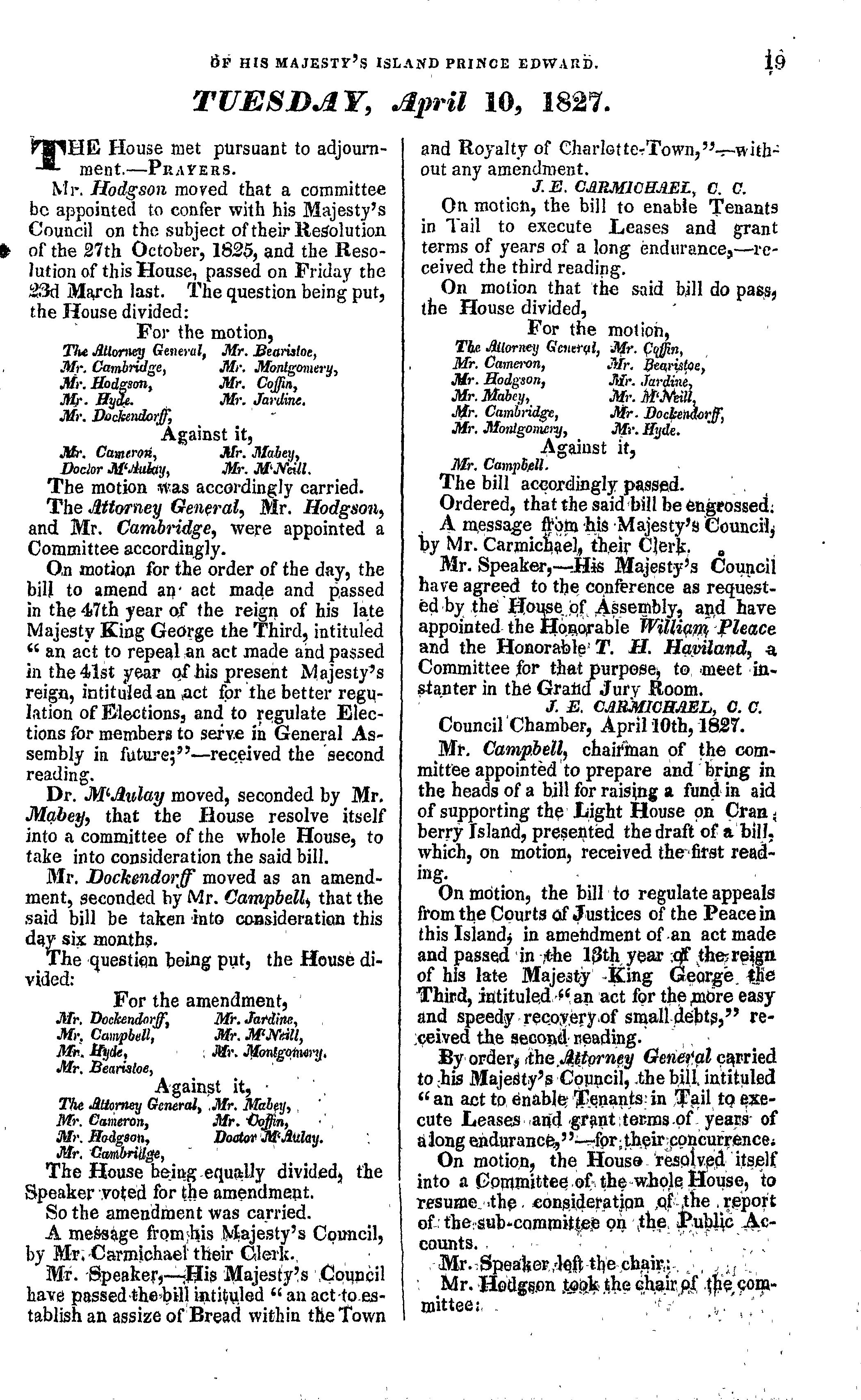 Journal of the House of Assembly of Prince Edward Island ... : Journal of the House of Assembly of His Majesty's Island Prince Edward : third session of the twelfth General Assembly : 1827