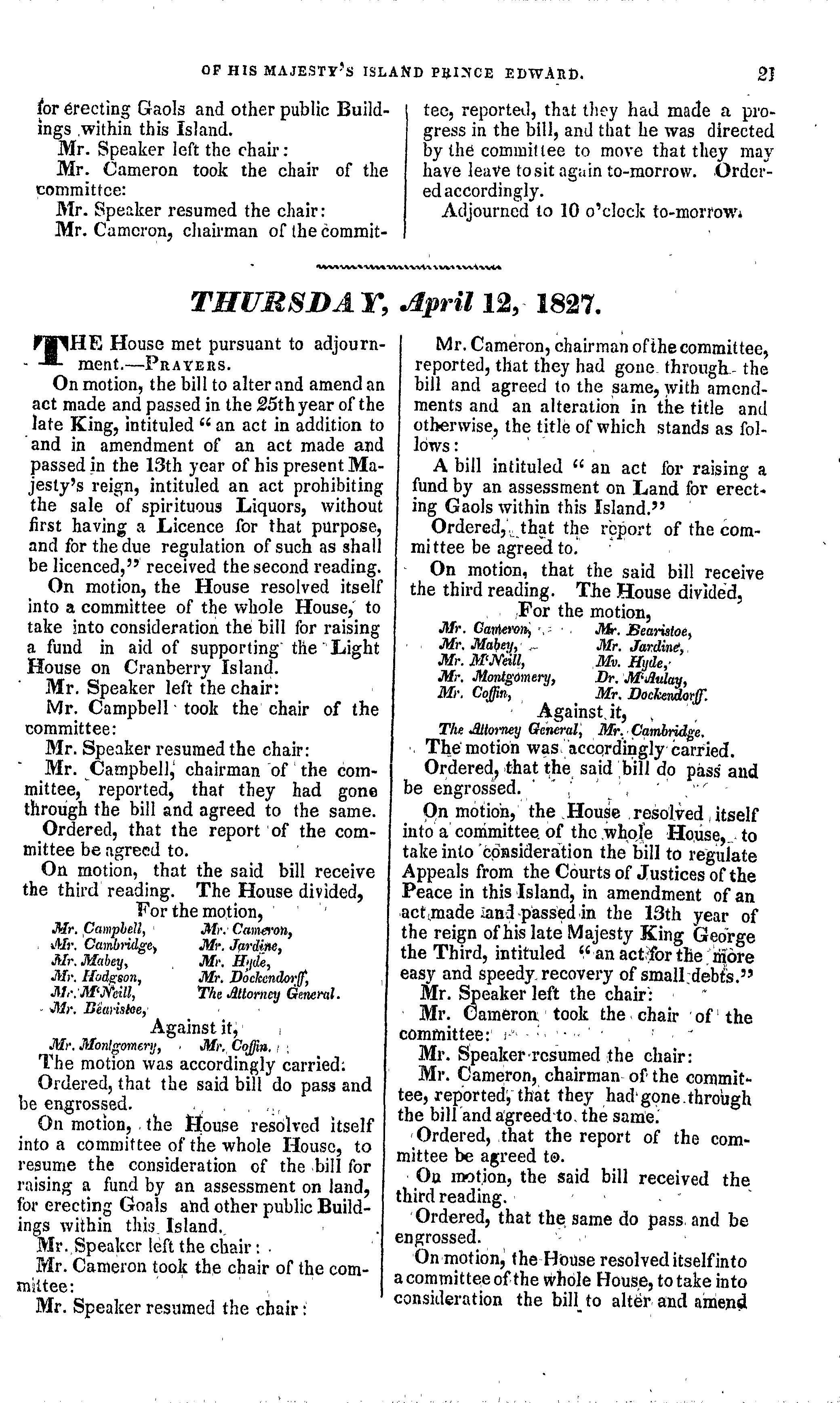 Journal of the House of Assembly of Prince Edward Island ... : Journal of the House of Assembly of His Majesty's Island Prince Edward : third session of the twelfth General Assembly : 1827