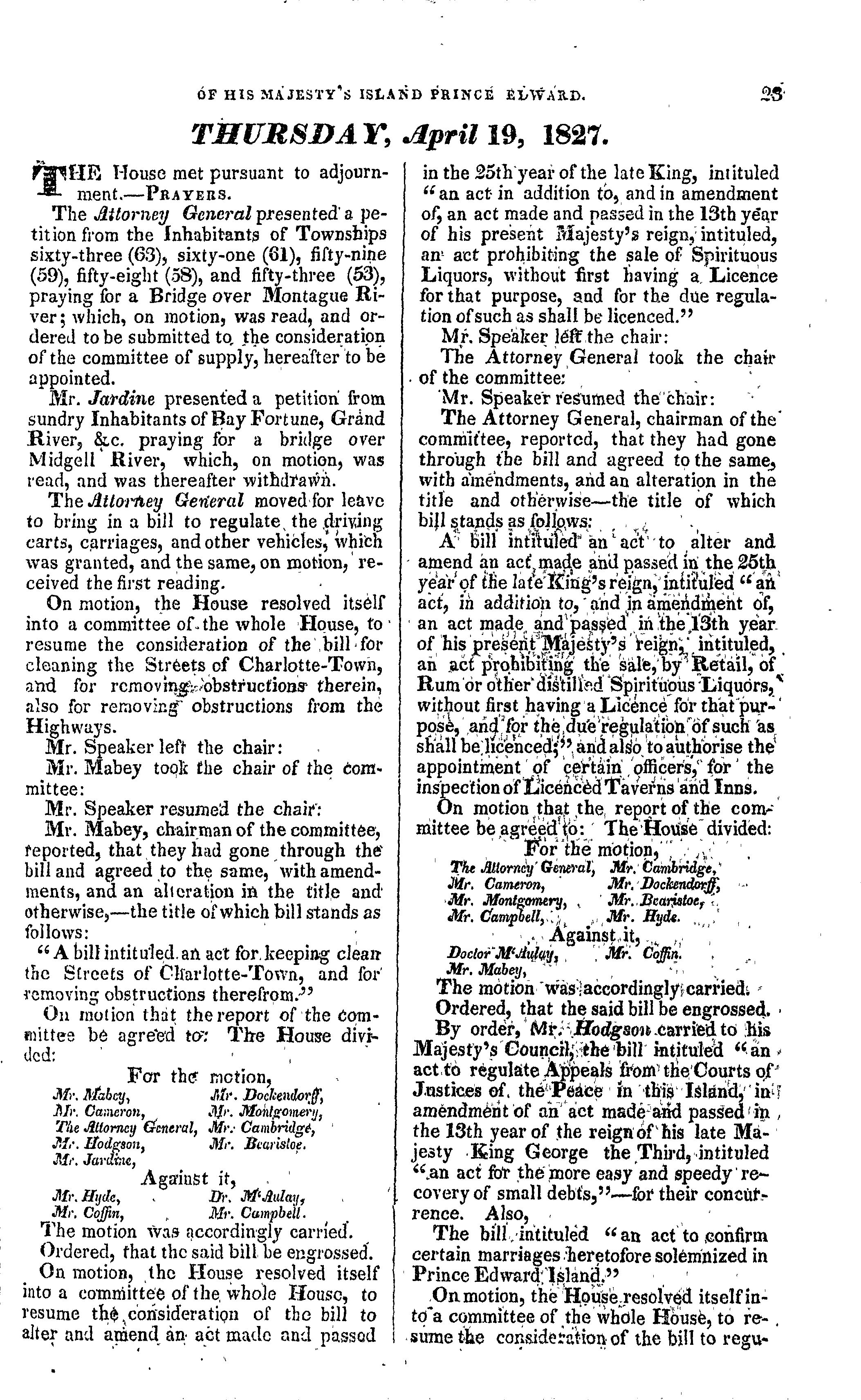Journal of the House of Assembly of Prince Edward Island ... : Journal of the House of Assembly of His Majesty's Island Prince Edward : third session of the twelfth General Assembly : 1827