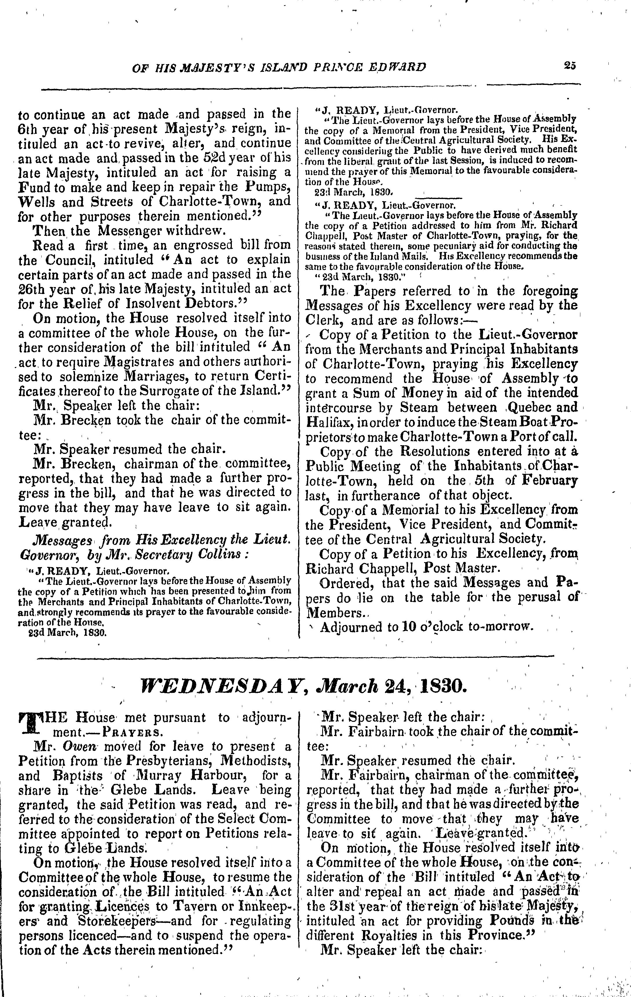 - Journal of the House of Assembly of His Majesty's Island Prince Edward : anno undecimo Regis Georgii IV, sixth session of the twelfth General Assembly : 1830