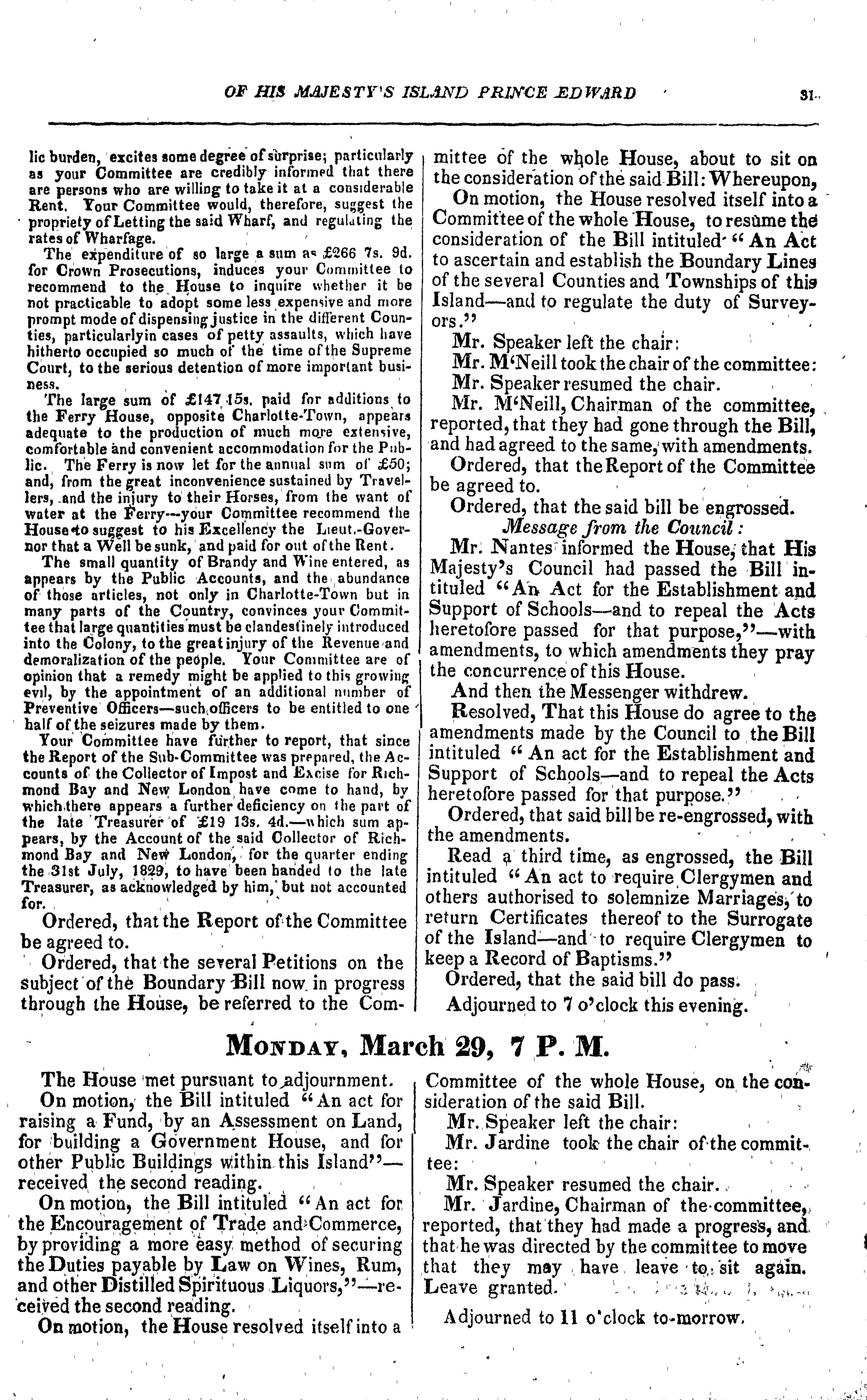 Journal of the House of Assembly of Prince Edward Island ... : Journal of the House of Assembly of His Majesty's Island Prince Edward : anno undecimo Regis Georgii IV, sixth session of the twelfth General Assembly : 1830