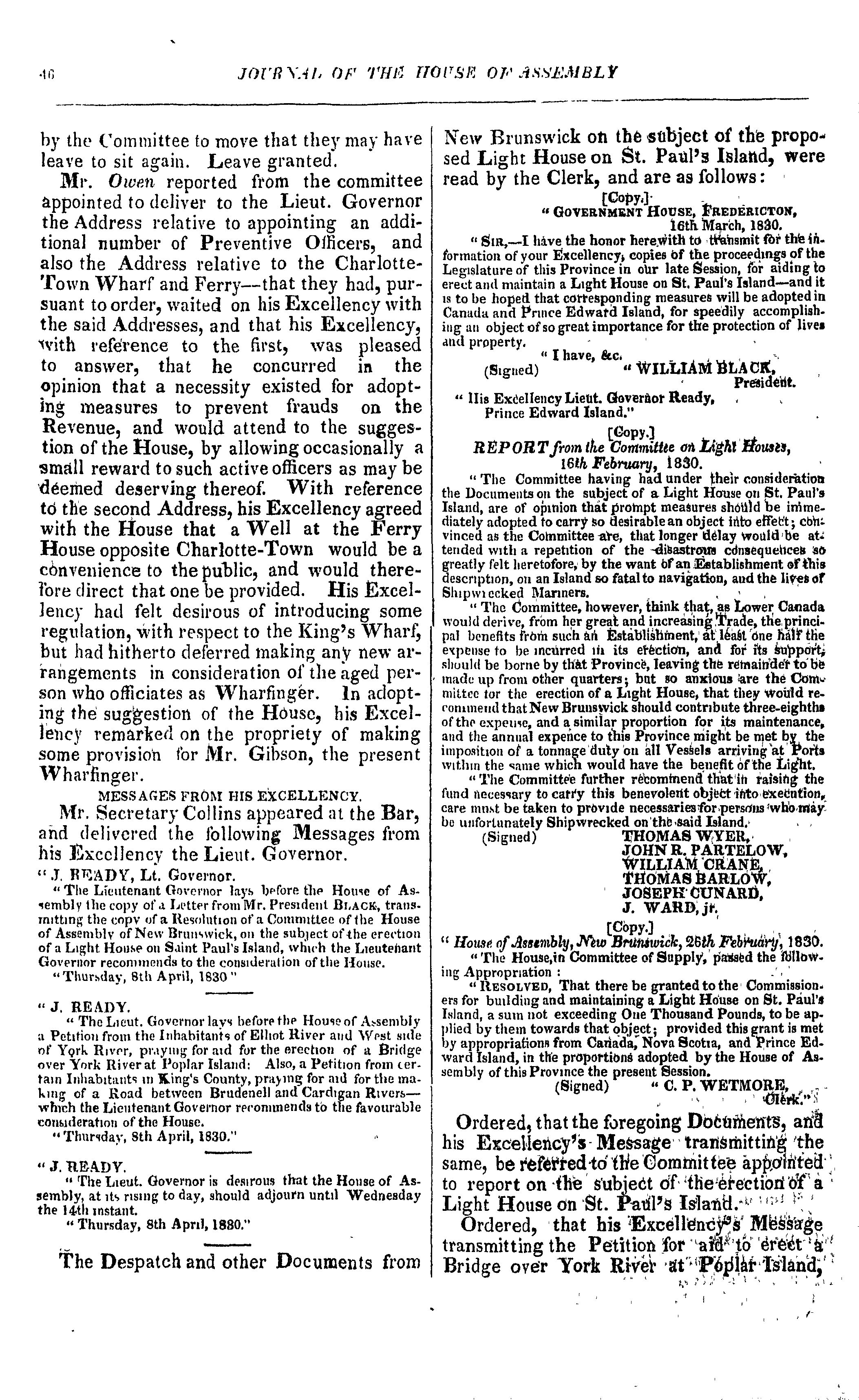- Journal of the House of Assembly of His Majesty's Island Prince Edward : anno undecimo Regis Georgii IV, sixth session of the twelfth General Assembly : 1830