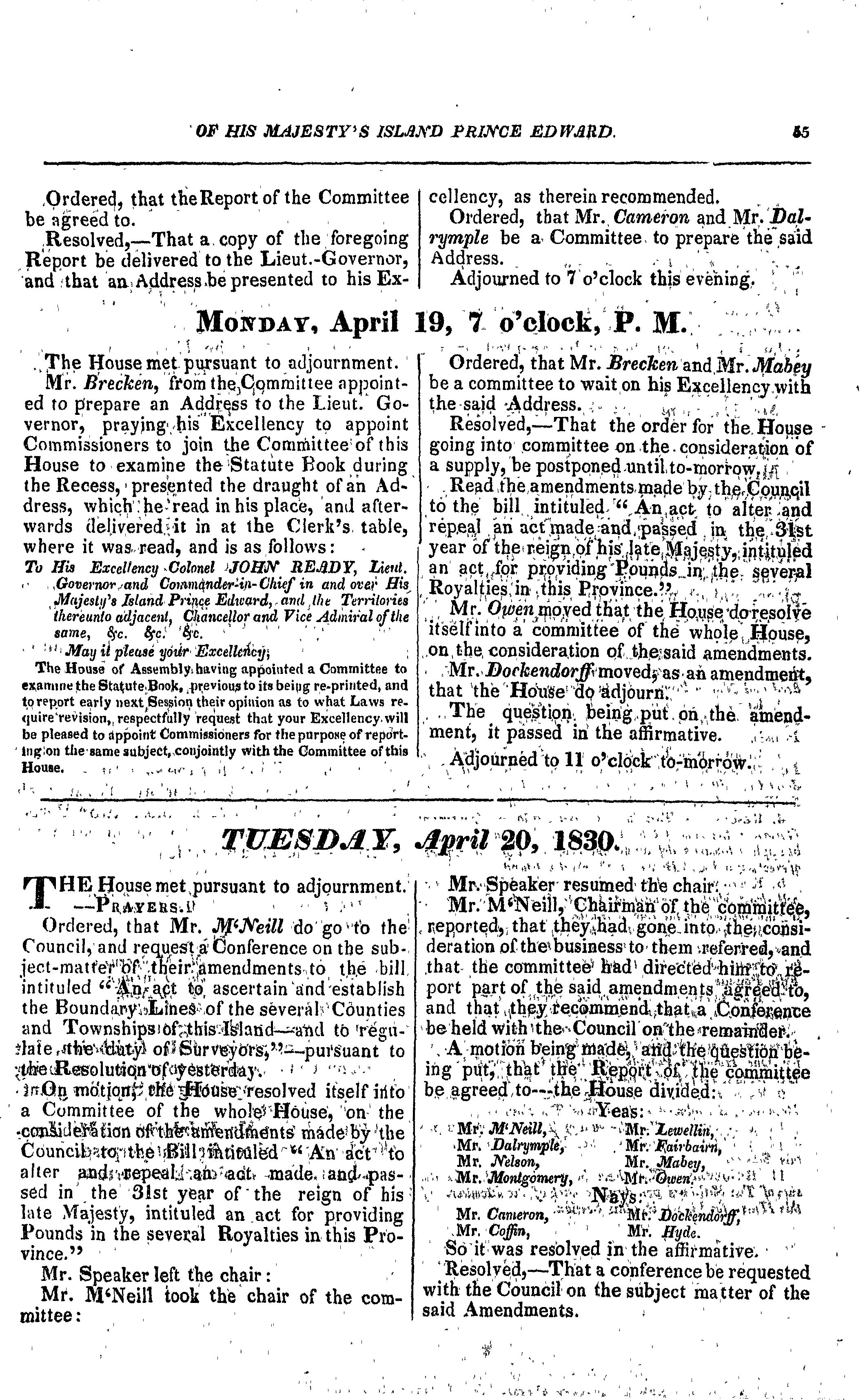 - Journal of the House of Assembly of His Majesty's Island Prince Edward : anno undecimo Regis Georgii IV, sixth session of the twelfth General Assembly : 1830