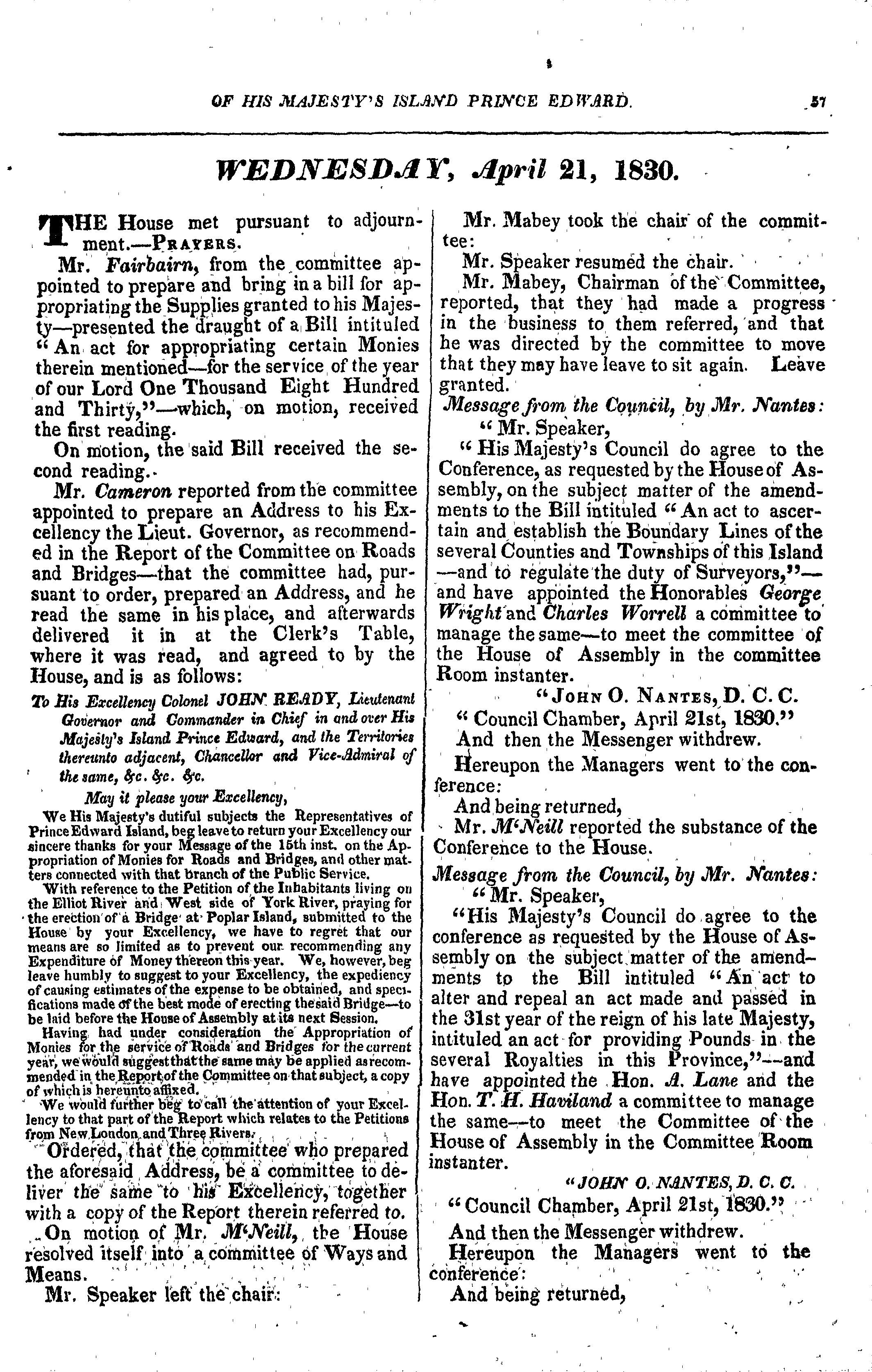 Journal of the House of Assembly of Prince Edward Island ... : Journal of the House of Assembly of His Majesty's Island Prince Edward : anno undecimo Regis Georgii IV, sixth session of the twelfth General Assembly : 1830