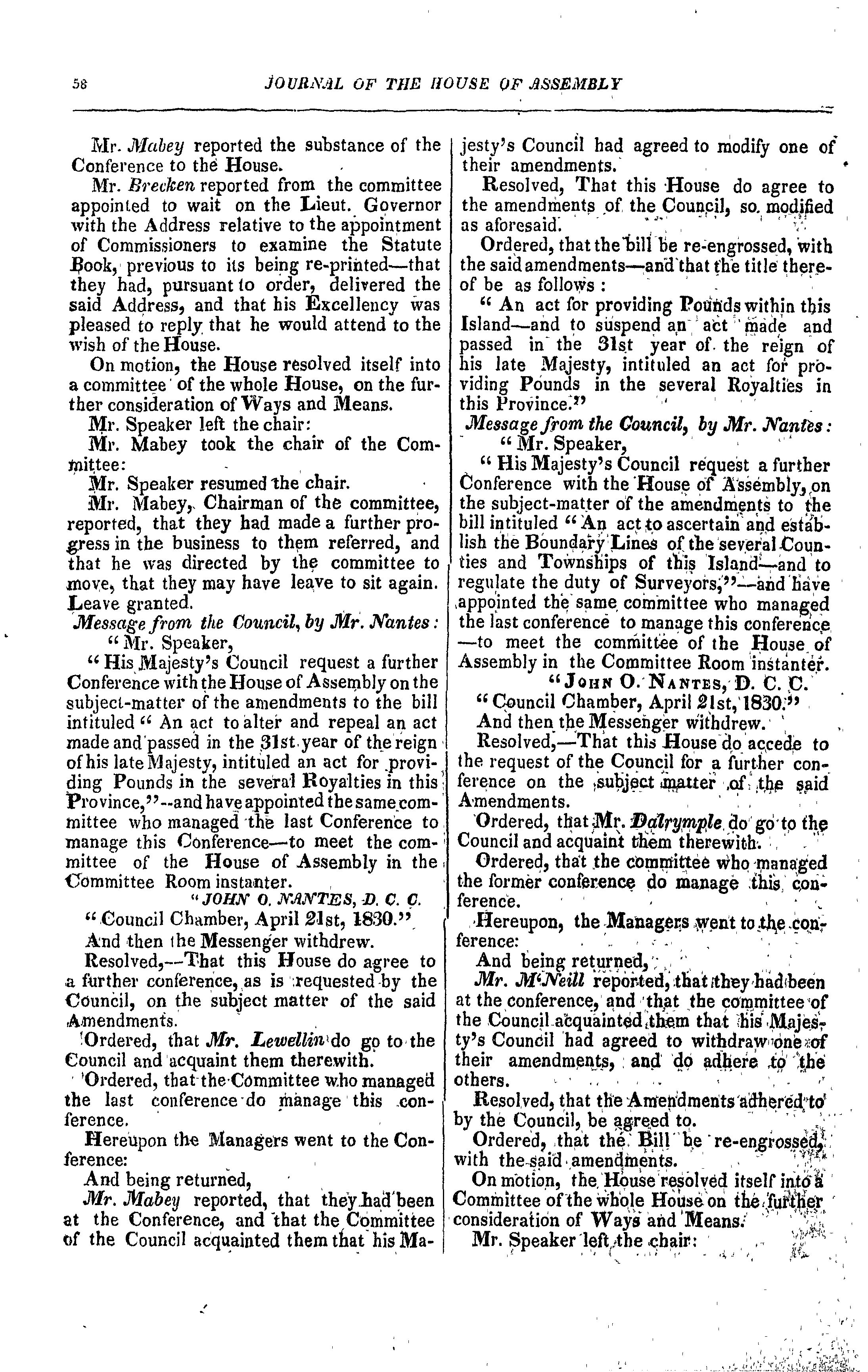 - Journal of the House of Assembly of His Majesty's Island Prince Edward : anno undecimo Regis Georgii IV, sixth session of the twelfth General Assembly : 1830