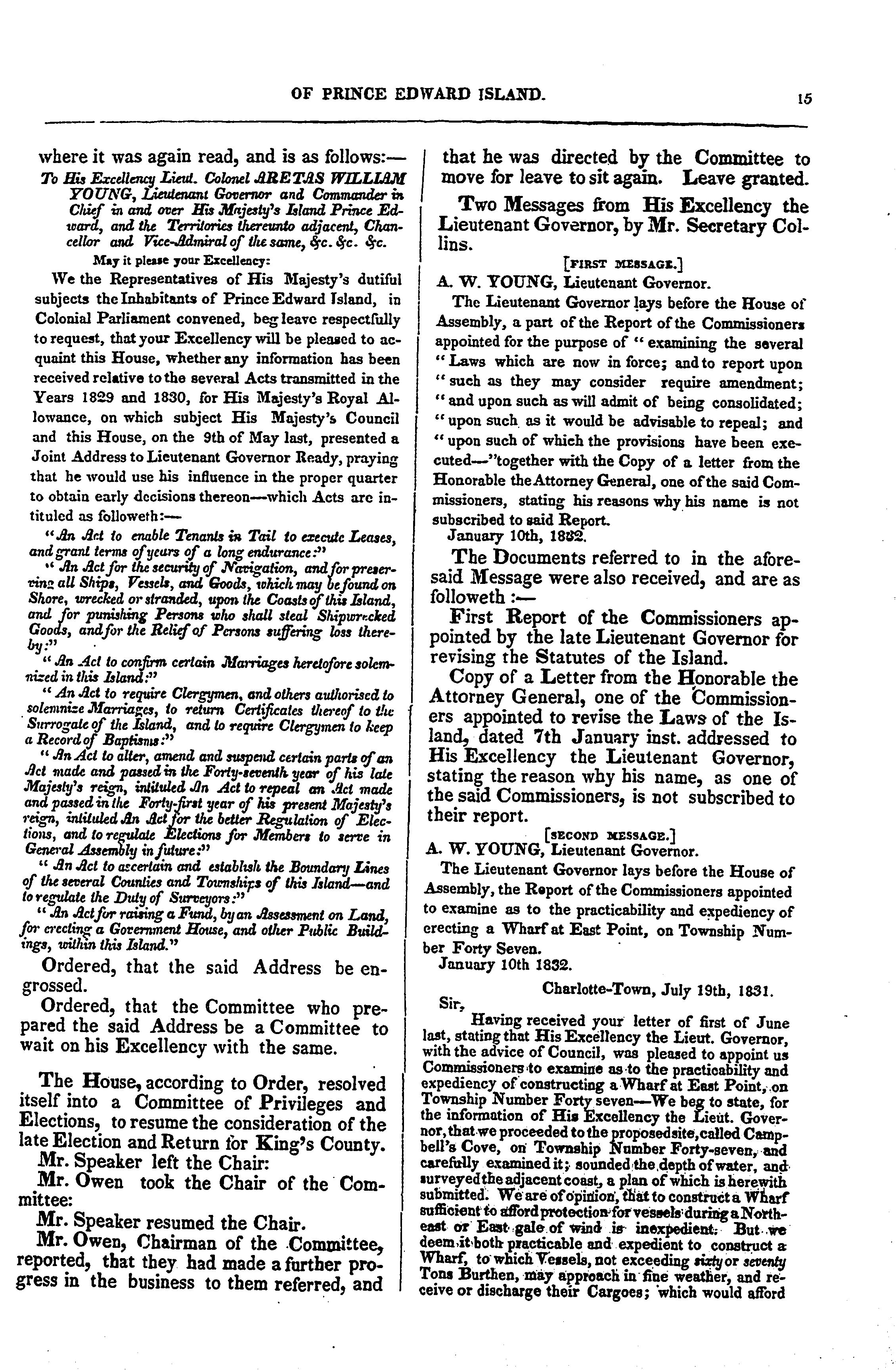 Journal of the House of Assembly of Prince Edward Island ... : Journal of the House of Assembly of Prince Edward Island : anno secundo regis Gulielmi IV, second session of the thirteenth General Assembly : 1832
