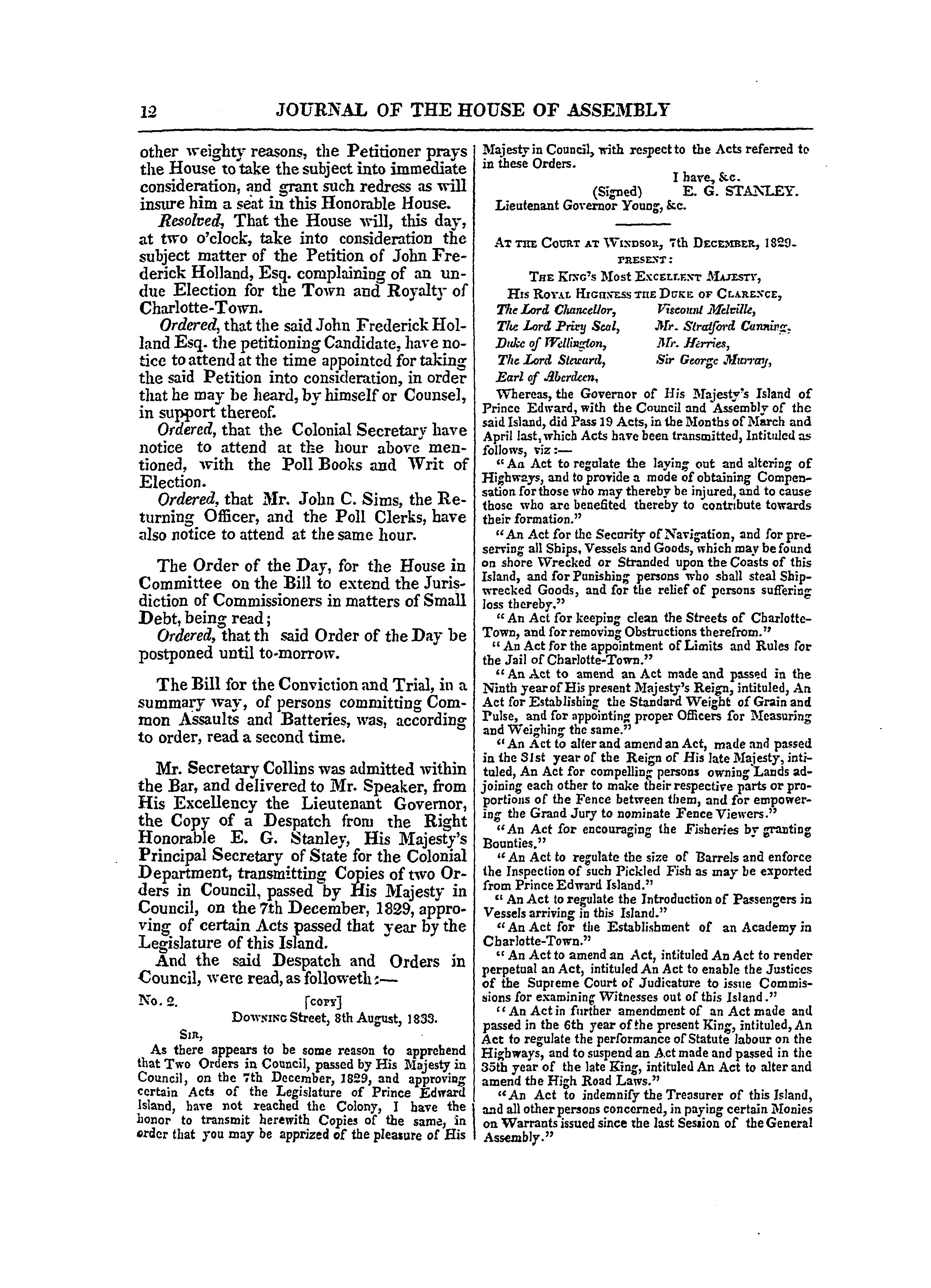 Journal of the House of Assembly of Prince Edward Island ... : Journal [of] the House of Assembly of Prince Edward Island : anno quarto regis Gulielmi IV, fourth session of the thirteenth General Assembly : 1834