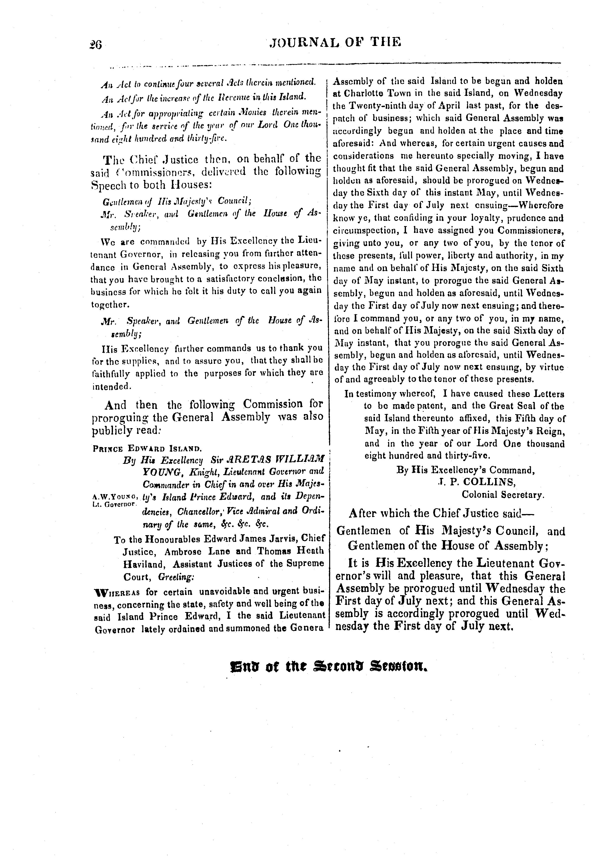 - Journal of the House of Assembly of Prince Edward Island ... second session of the fourteenth General Assembly : 1835